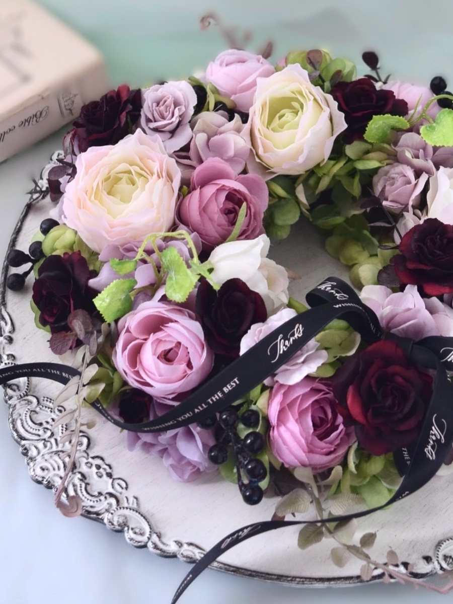 現在は、主にブライダルブーケ・リース・アレンジメントなどを制作・販売させていただいております。