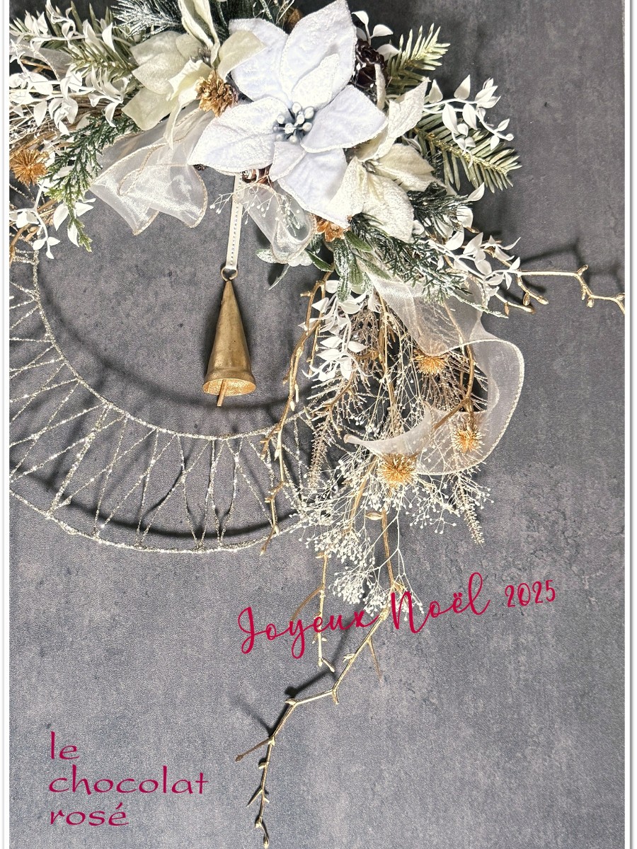 ゴールドの枝、ラメを纏ったカスミソウやスノーシダーをあしらい