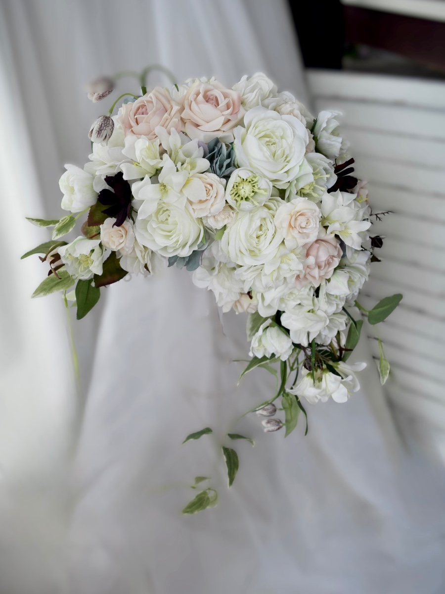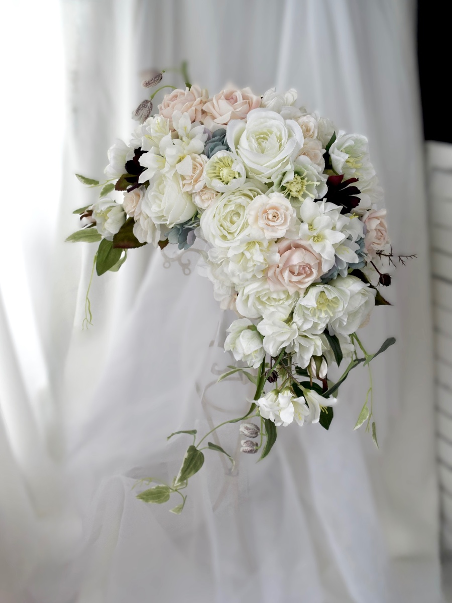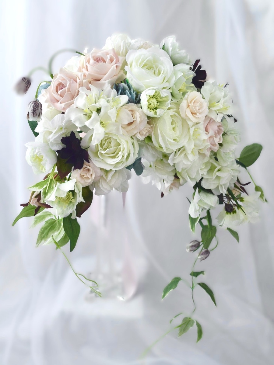 現在は、主にブライダルブーケ・リース・アレンジメントなどを制作・販売させていただいております。