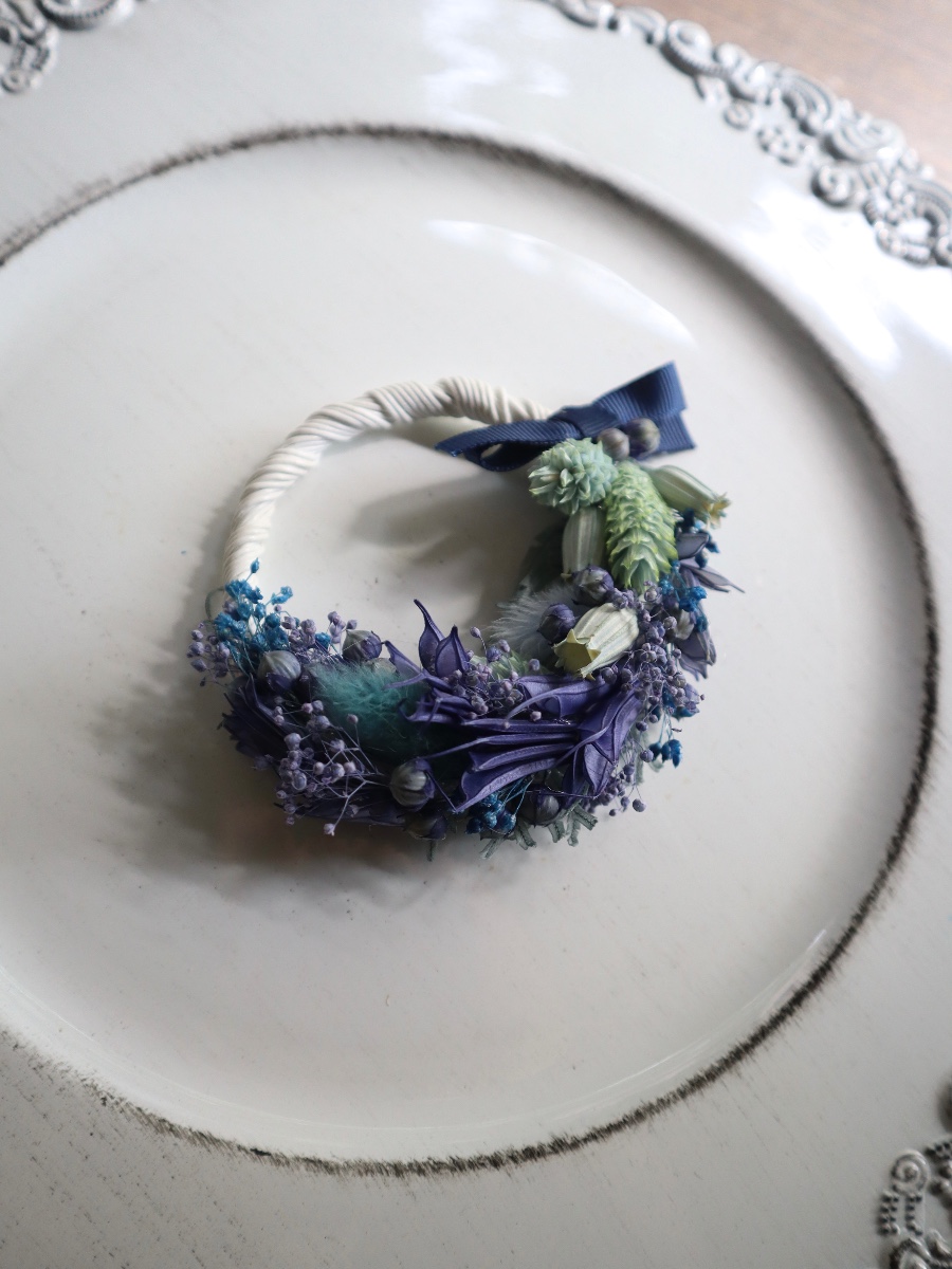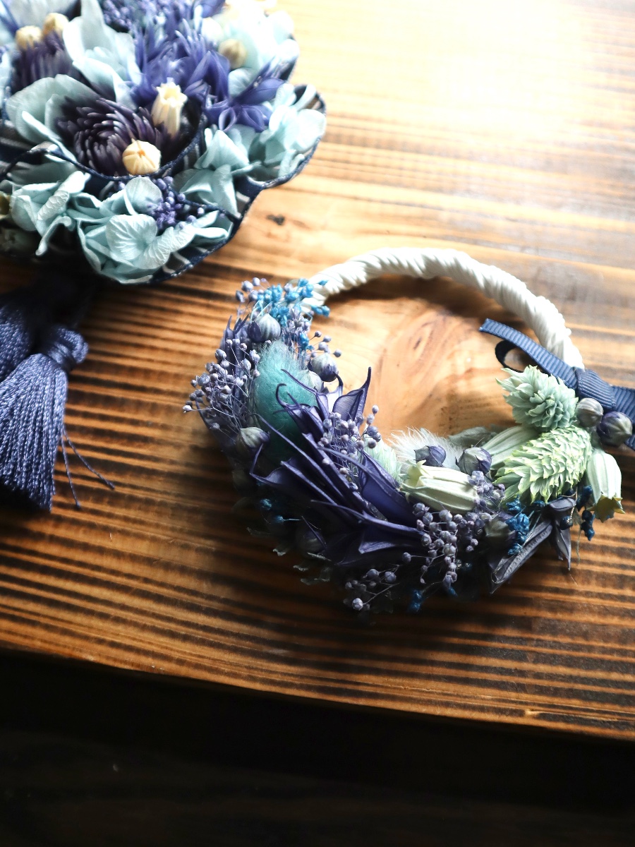 水引の切った残りとドライフラワーの折れてしまった物などを集めて作りました。