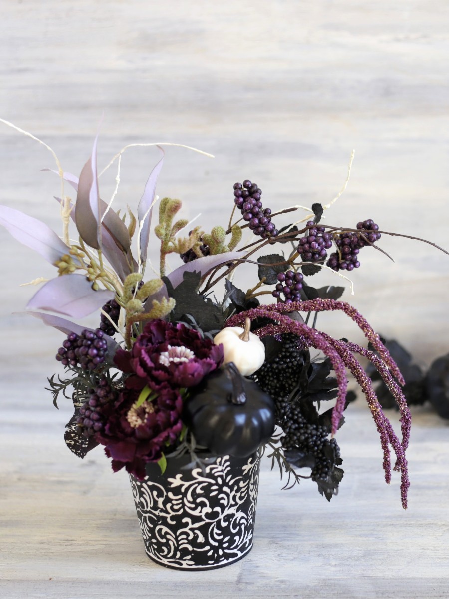 ブラック&パープルでまとめたハロウィンのアレンジメントです。