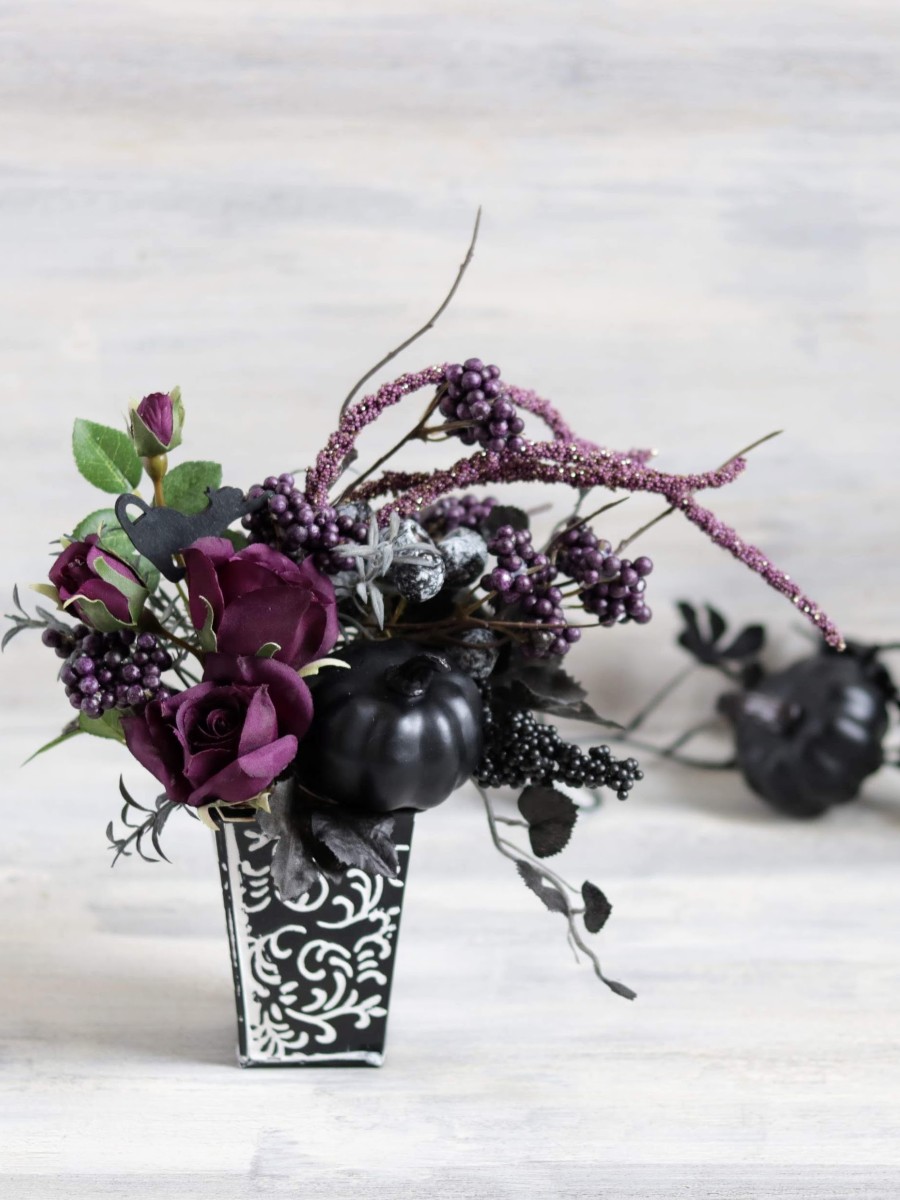 ブラック&パープルでまとめたハロウィンのアレンジメントです。