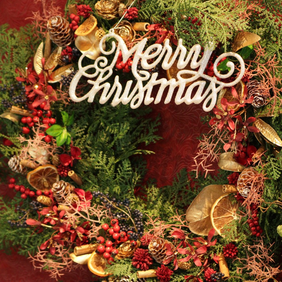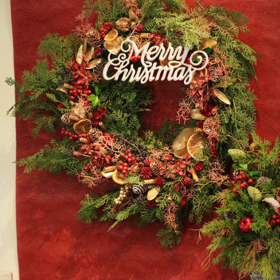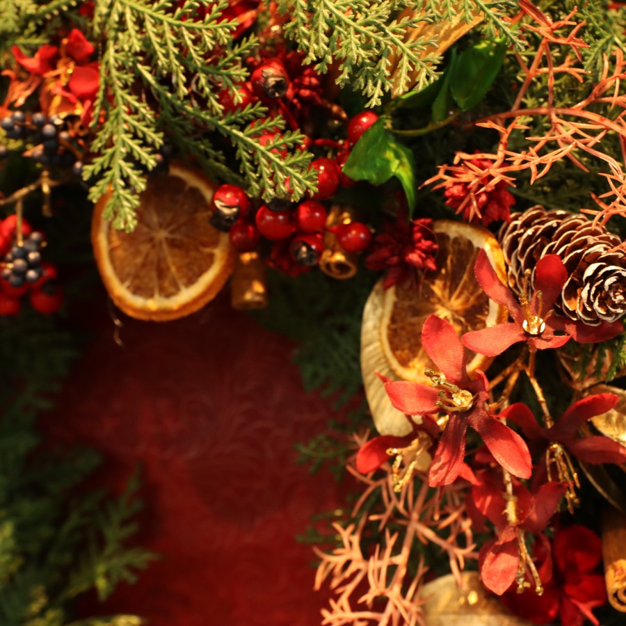 アーティフィシャルフラワーで彩る、華やかなクリスマスリース