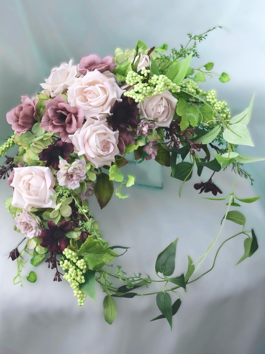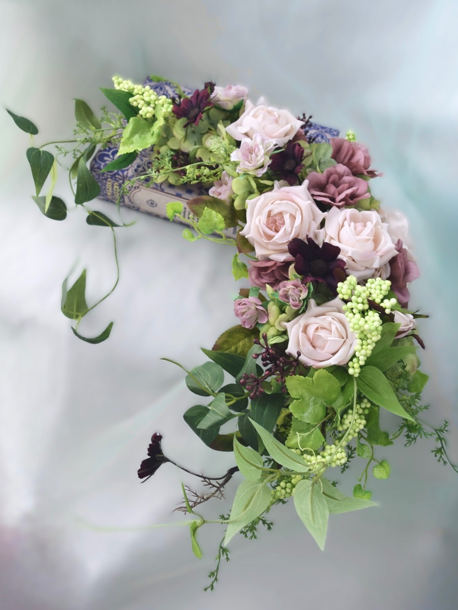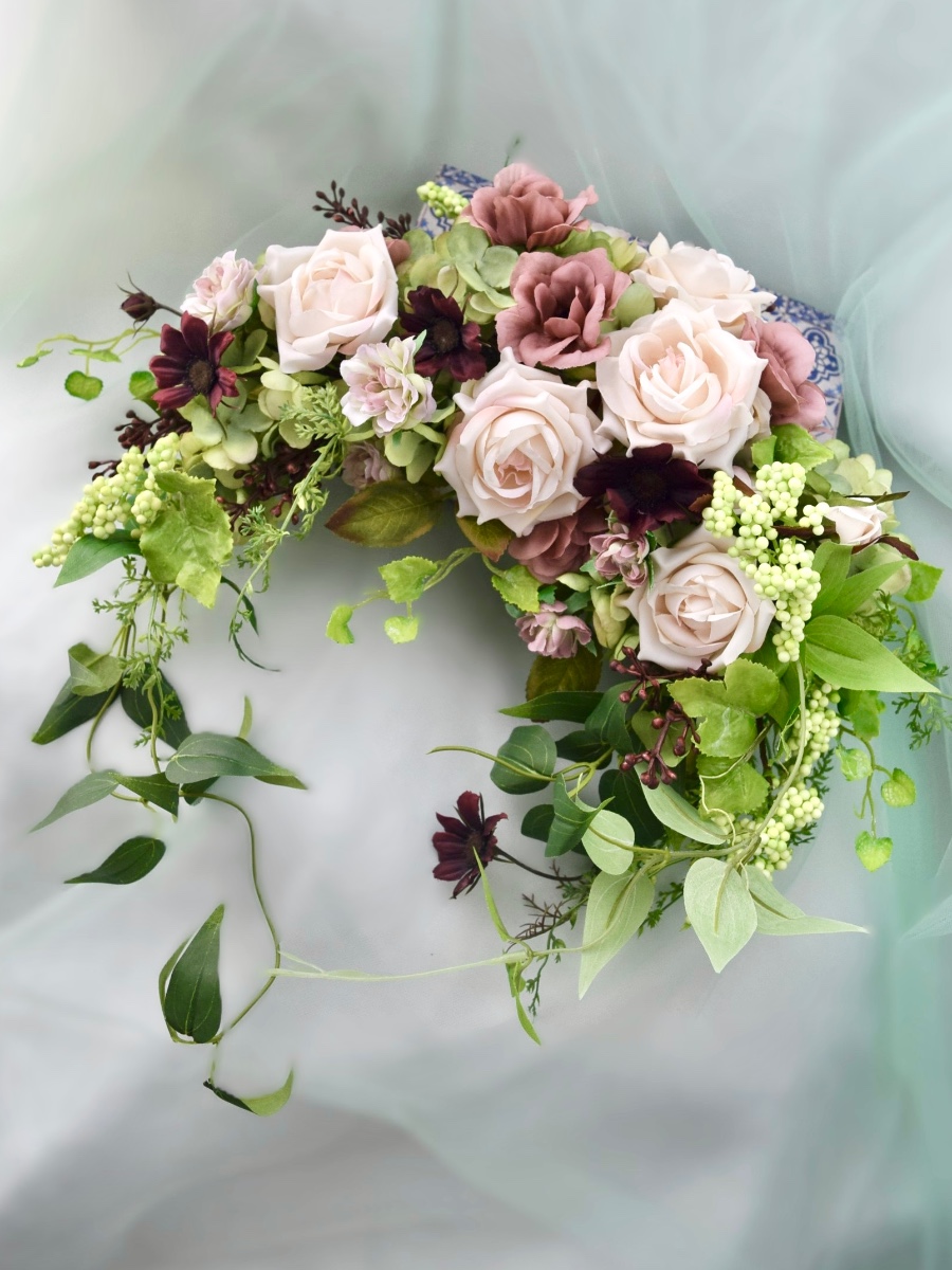 現在は、主にブライダルブーケ・リース・アレンジメントなどを制作・販売させていただいております。