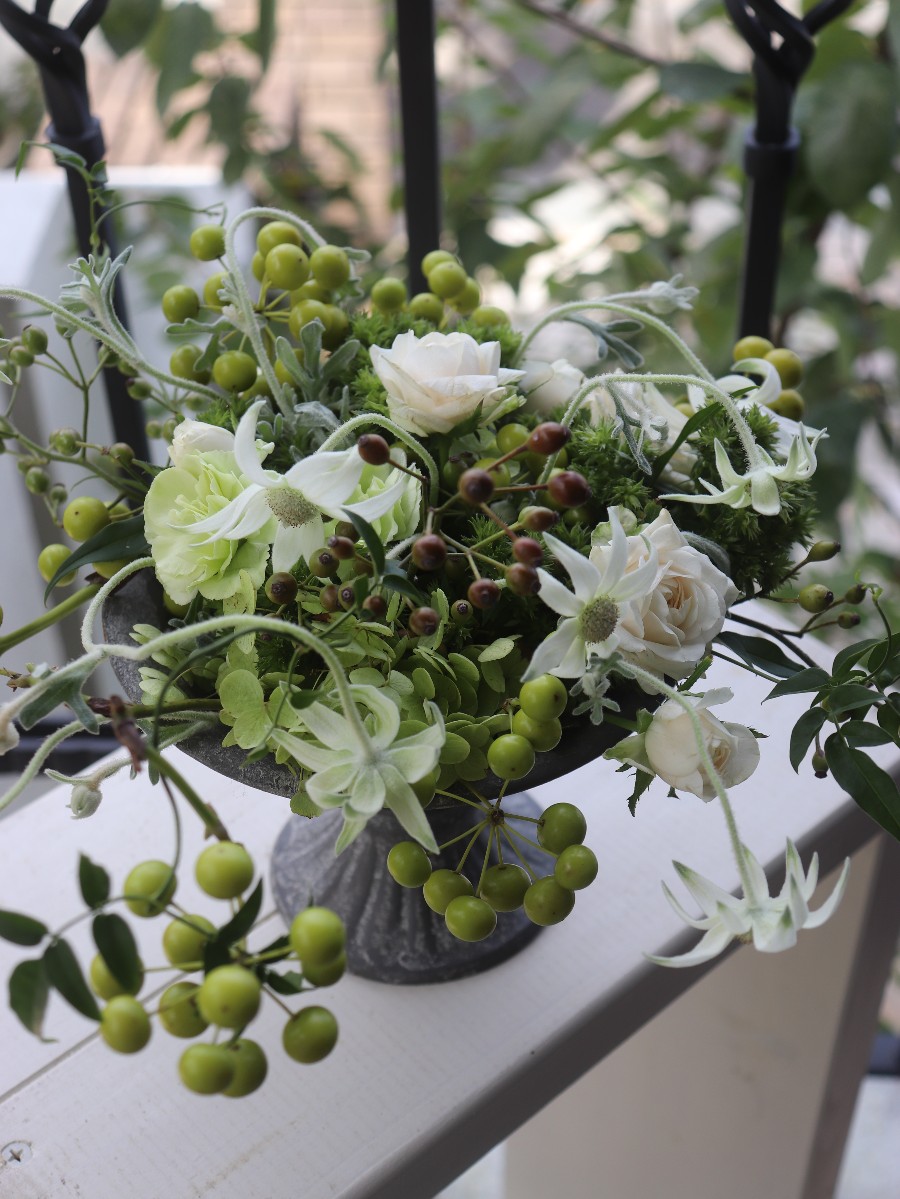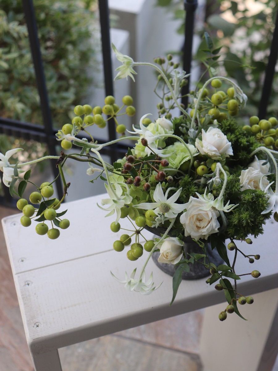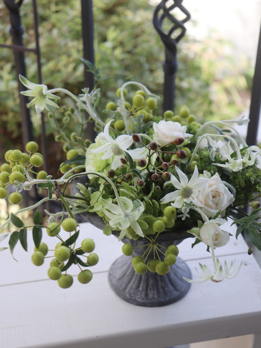 グリーンのサンキライと野バラの実を