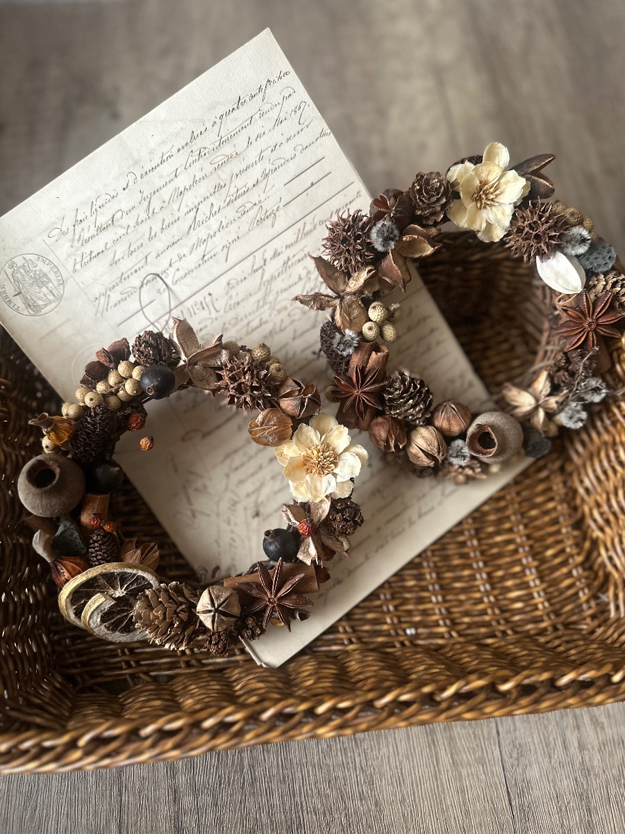 落ち着いた色合いにポイントでアネモネフラワーを添えました。