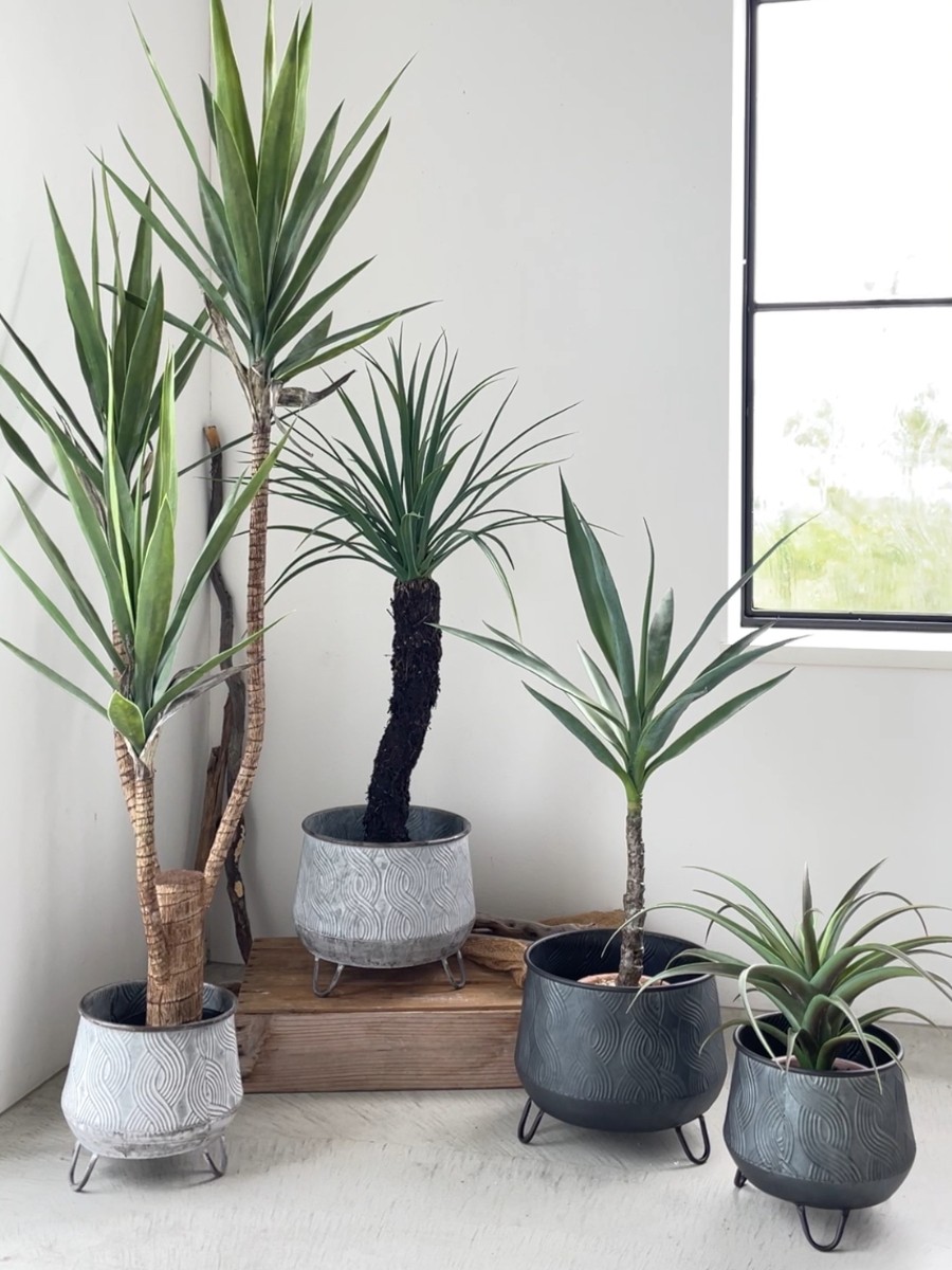 無機質な素材感と、曲線の美しさを合わせ持った足つきポット。