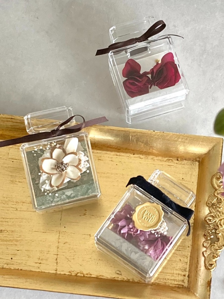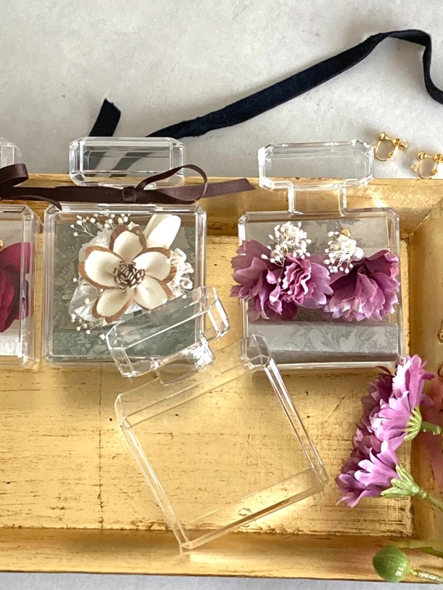 ひらひらボリュームのあるアーティフィシャルフラワーで、イヤリングを。