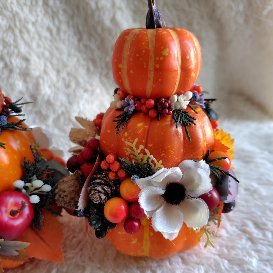 木の実や小さな花々を飾って、色鮮やかな秋らしい雰囲気に仕上げました。