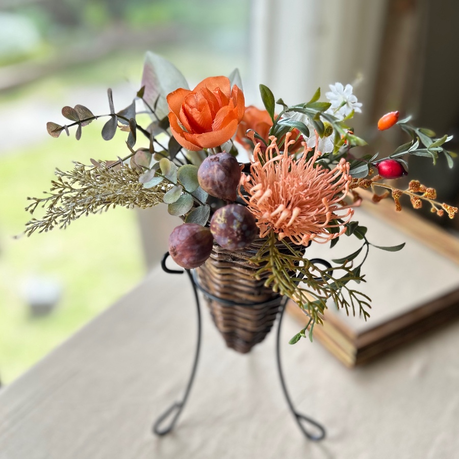 秋らしいカラーなのでハロウィンのオブジェと飾るのもお勧めです。