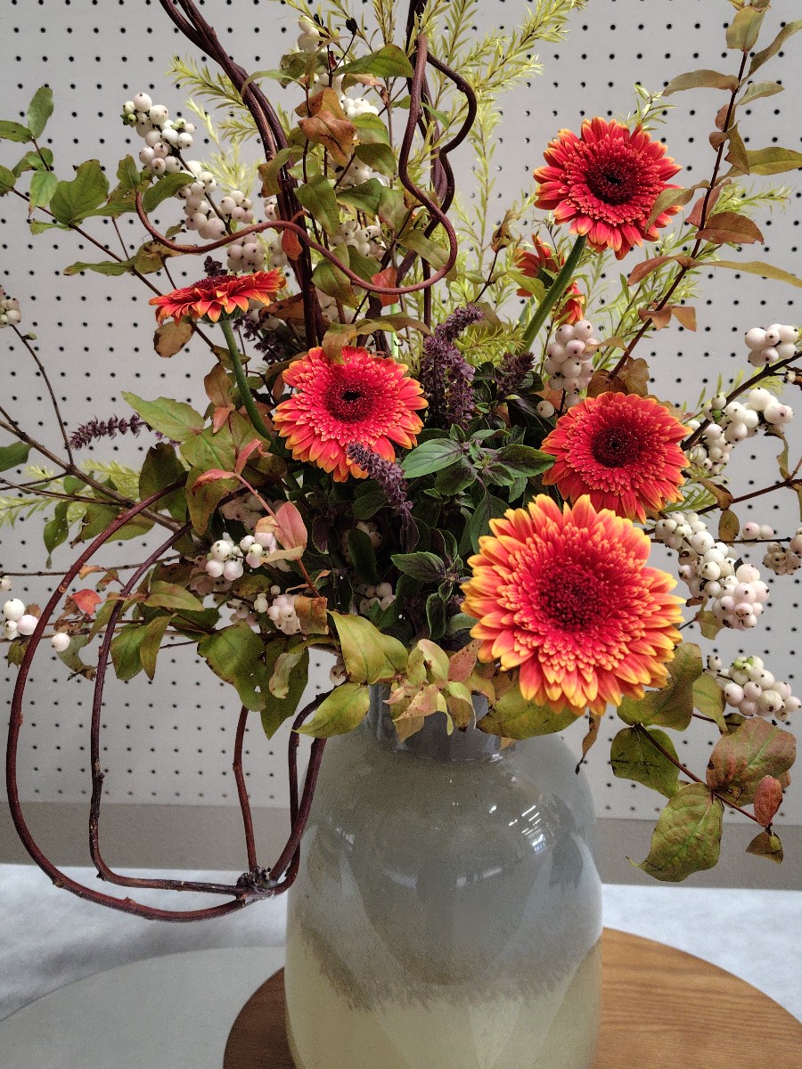 アレンジ、プリザーブド、アーティシャル、生花で活動しています。毎日がお稽古で、楽しく花と戯れています!