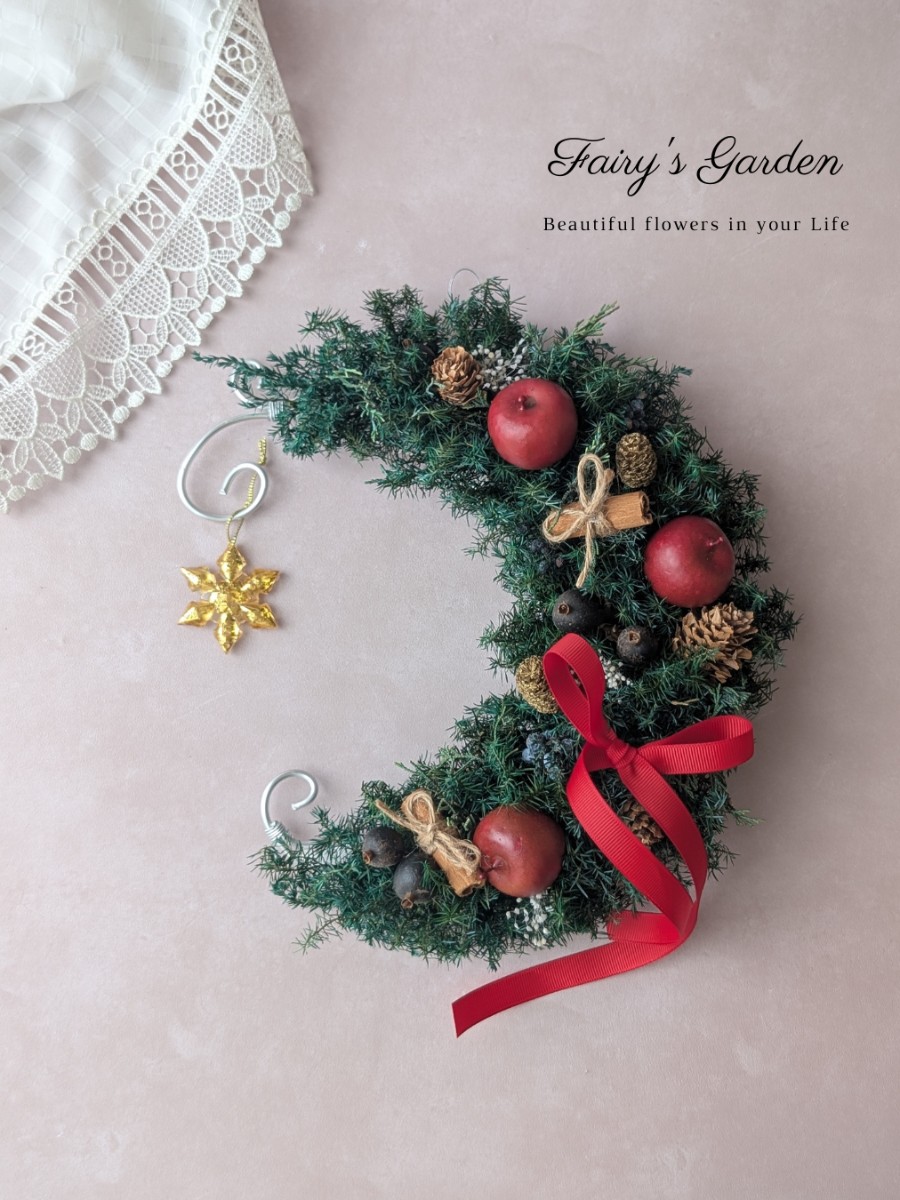 お月様の形のクリスマスリースです。