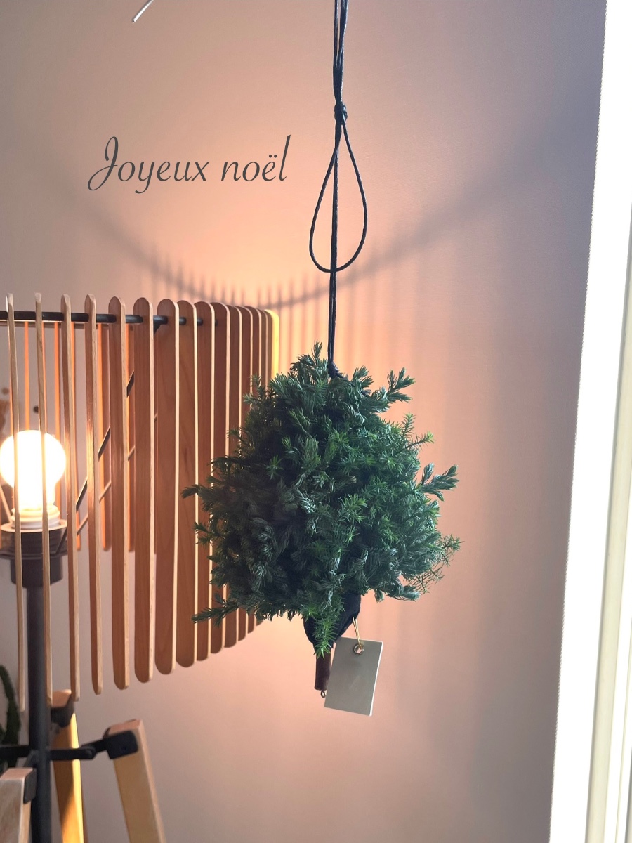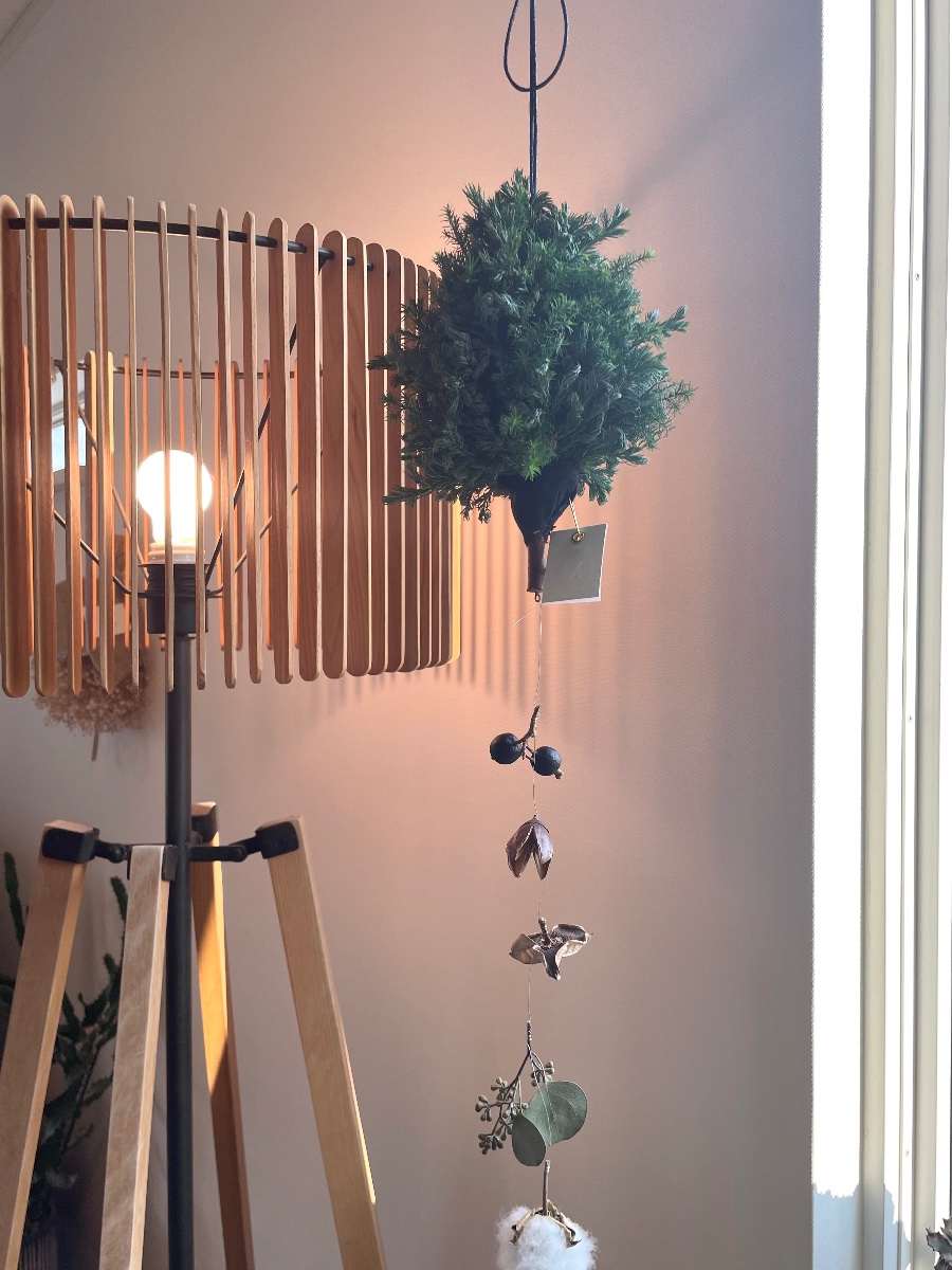 ヒムロスギとブルーバードで作ったミニツリーのフライングリースです。