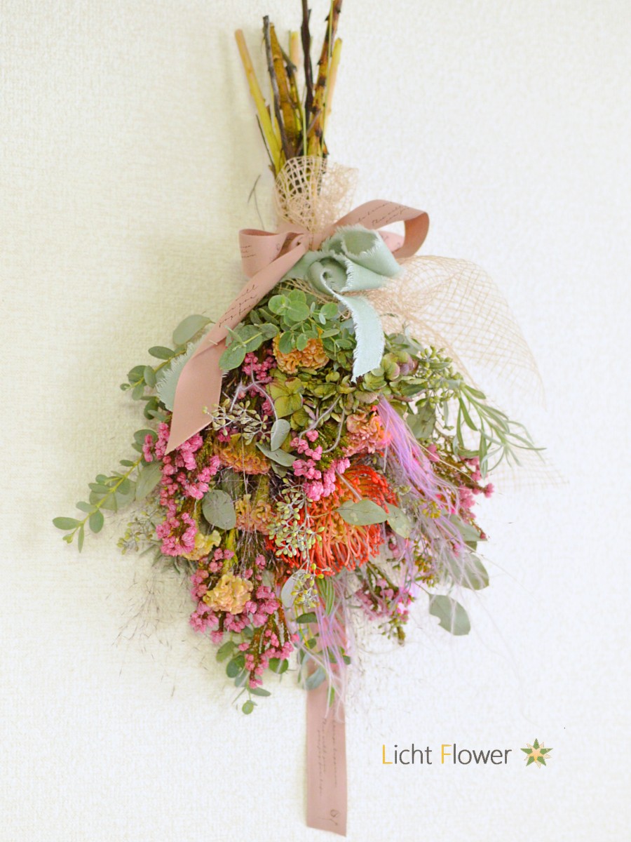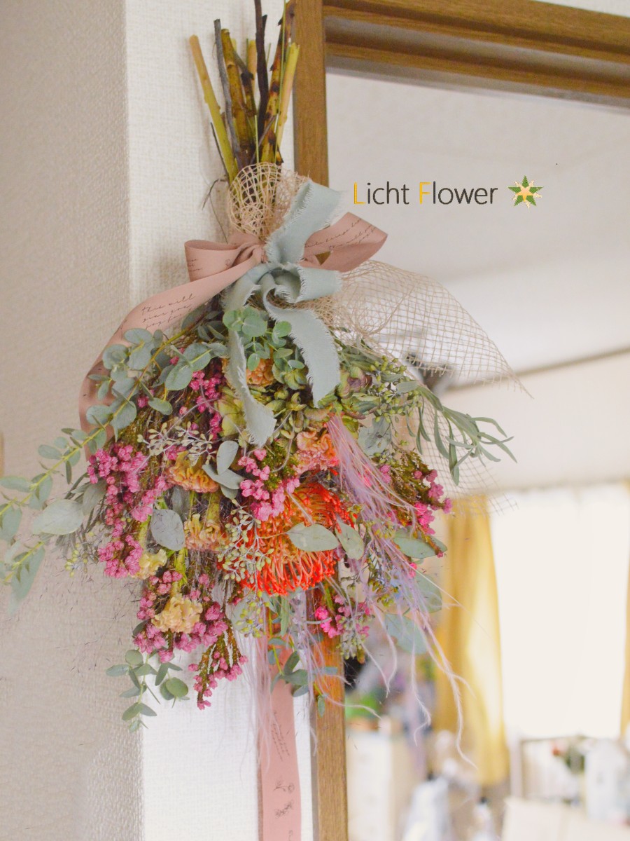 グラスとフェザーがユラユラとたなびく秋のスワッグ