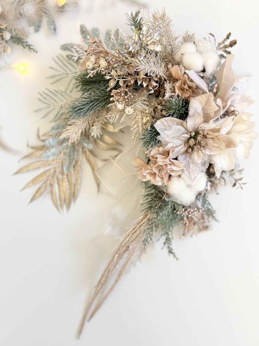 ゴージャスな大人のシャンパンカラーの馬蹄リース。