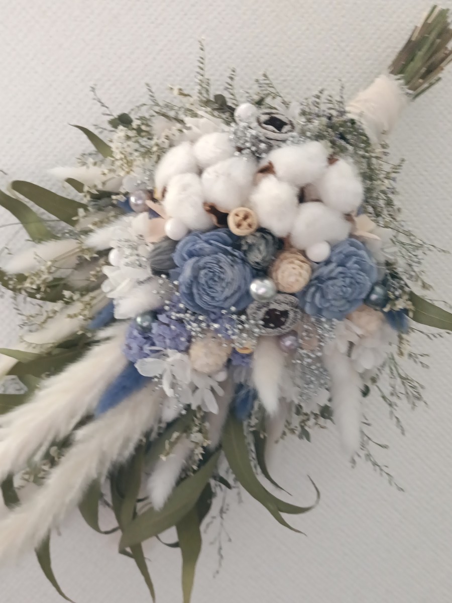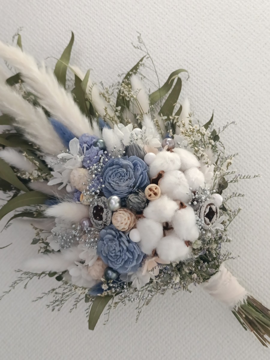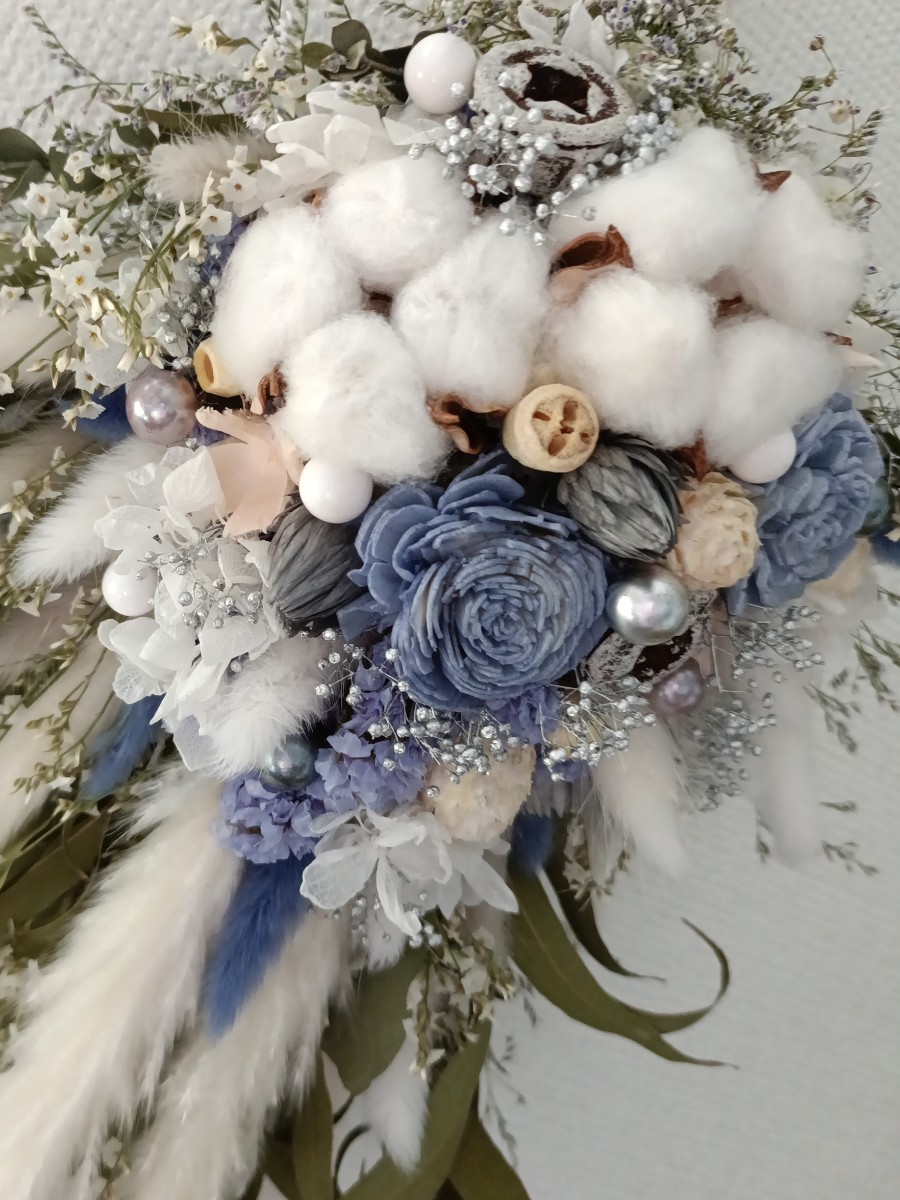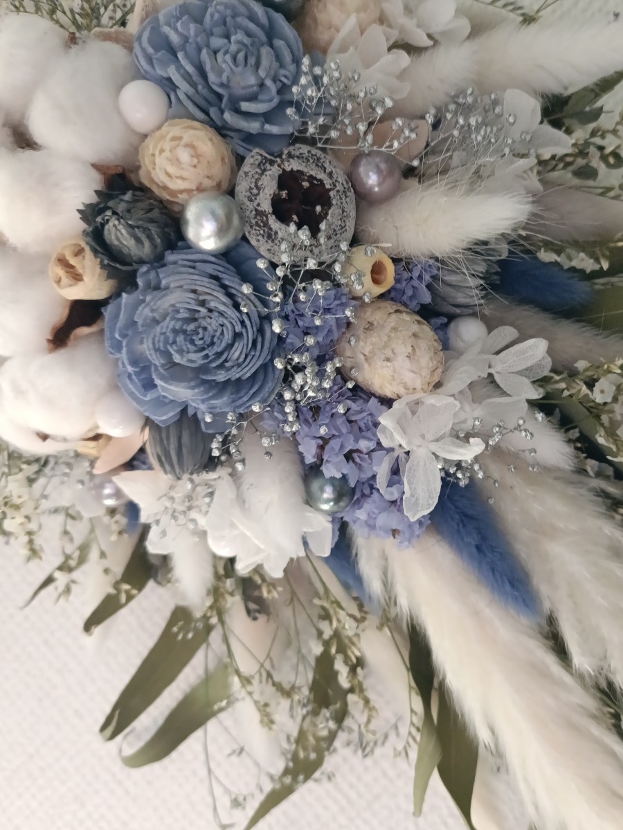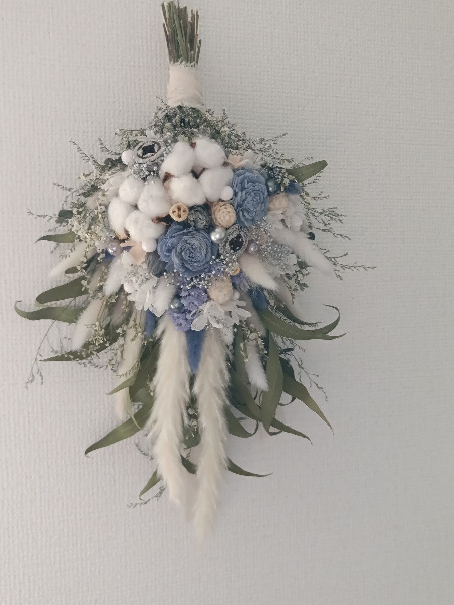 ホワイトとくすみブルーのさわやかなスワッグ