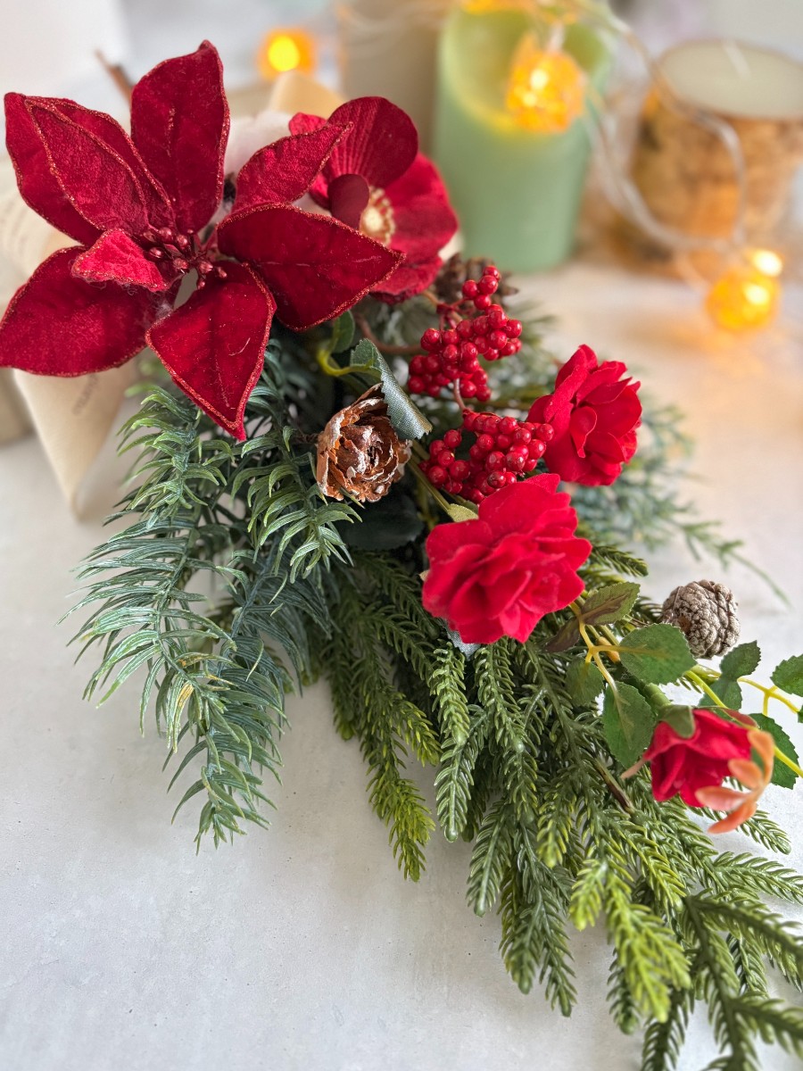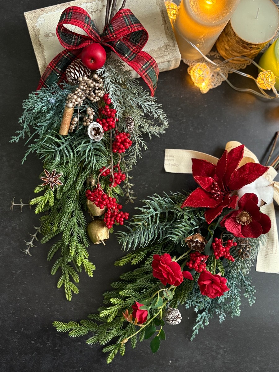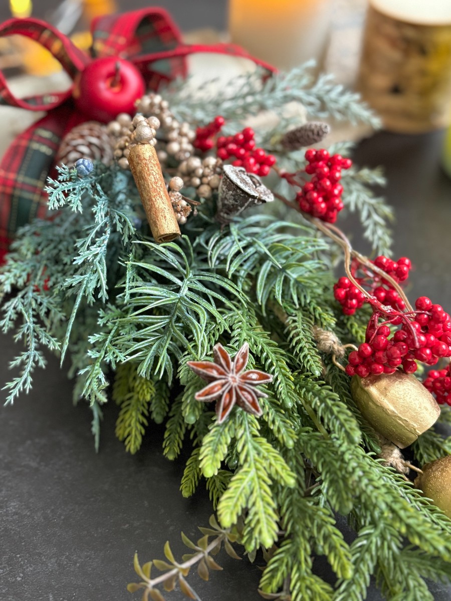 ドライの木の実も付けて、心温まるクリスマススワッグです。