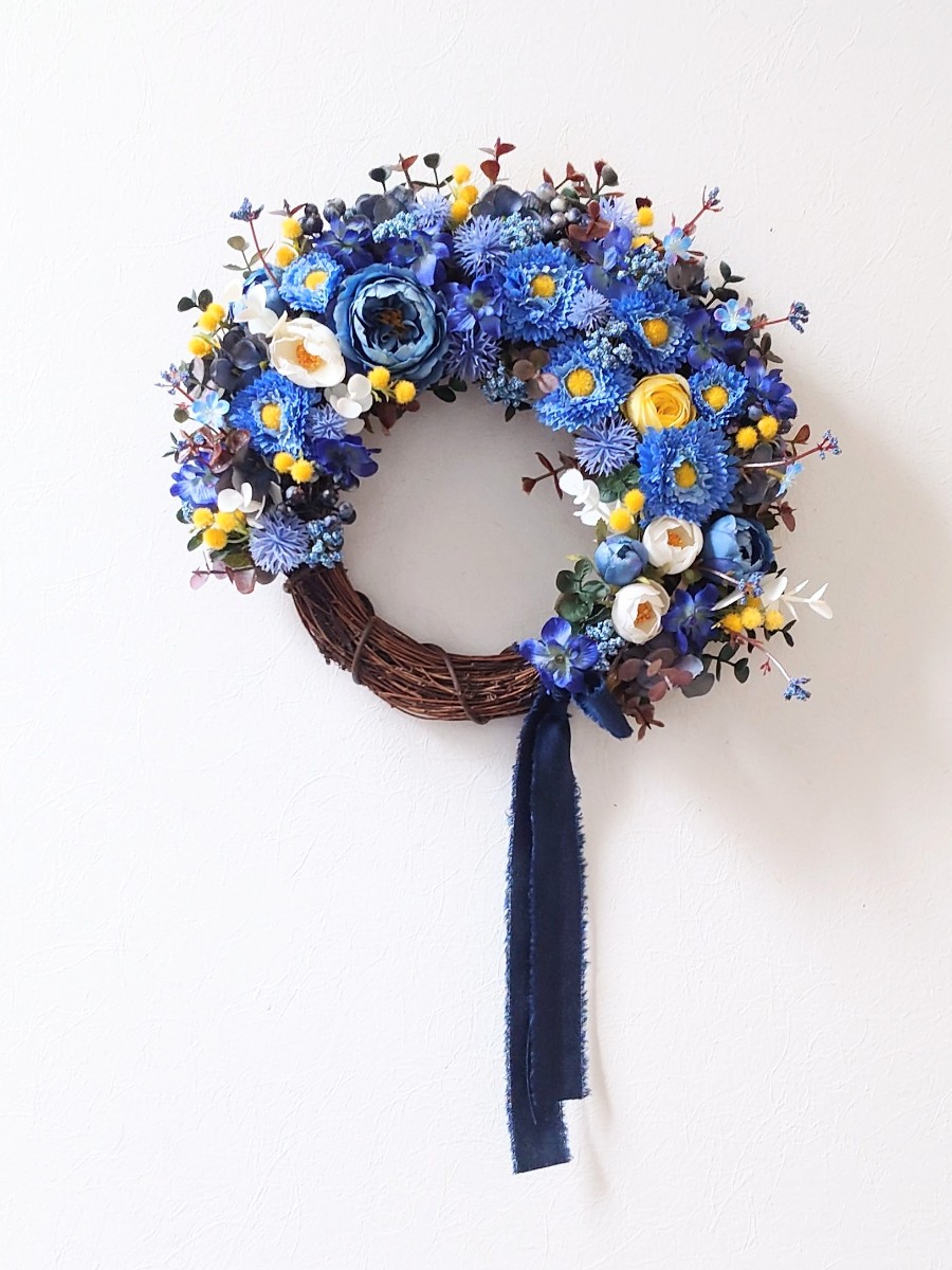 ゴッホの名作『星月夜』をイメージしたリースをお作りさせていただきました。