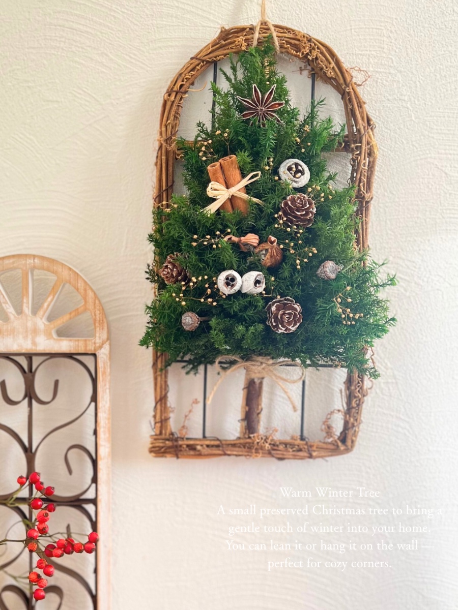 コンパクトで省スペースにも飾れるツリーです。