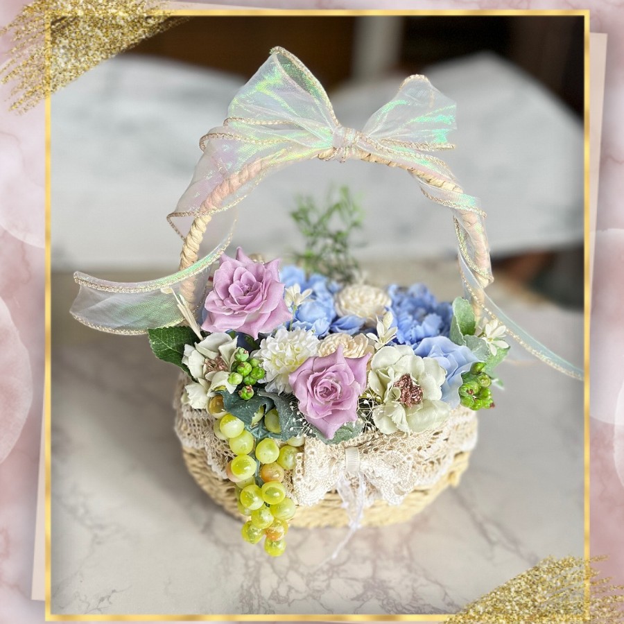 紫の小さなバラとぶどうとの相性が良い感じだなーって思います