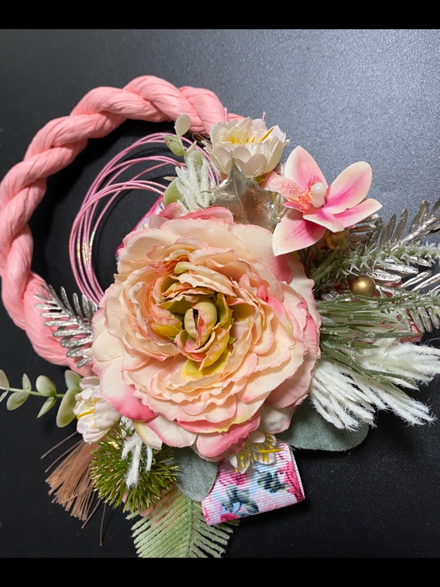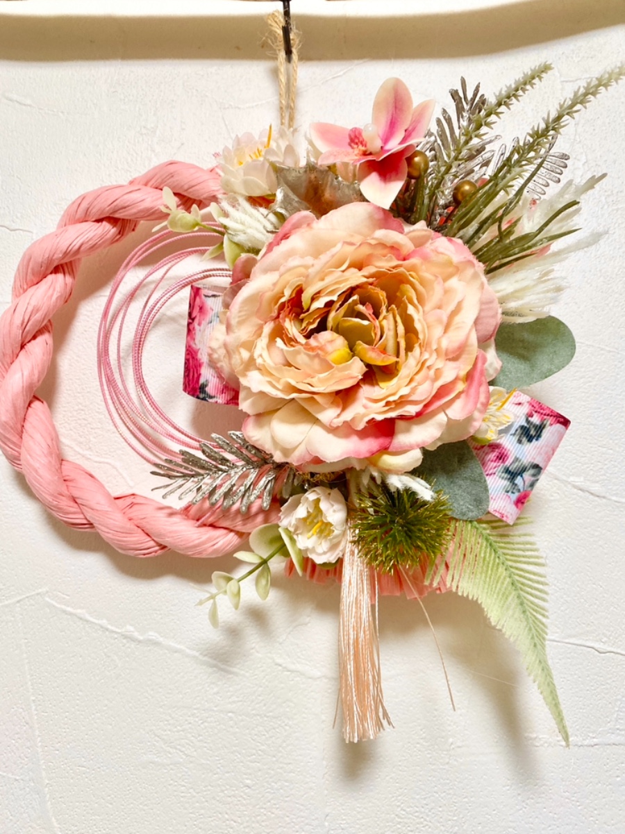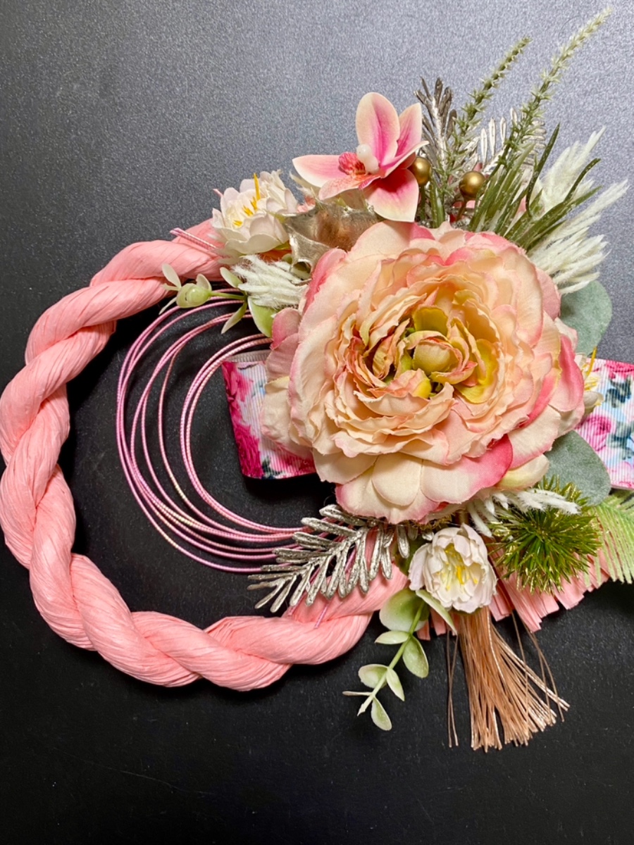 若い世代の方にも好まれるピンクのかわいいしめ縄飾りです。
