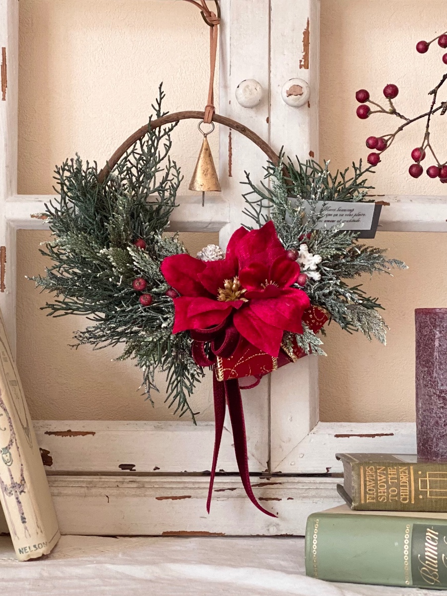 ラタンムーンリースベースを使ったクリスマスリースです。