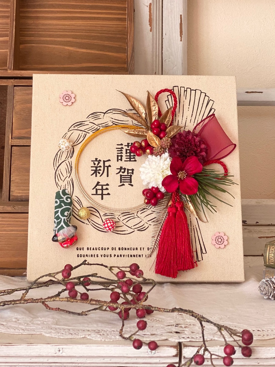 ひだまりの猫 定番のキャンバスボード新年ver.です。
