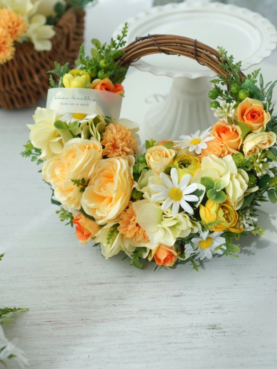 明るくやさしい彩りが心地よい、イエロー×オレンジリースの完成です