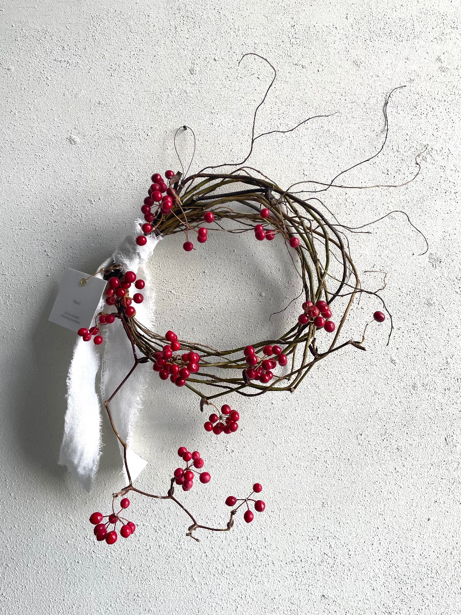 クリスマス、お正月どちらでも飾っていただけるサンキライのリースです。