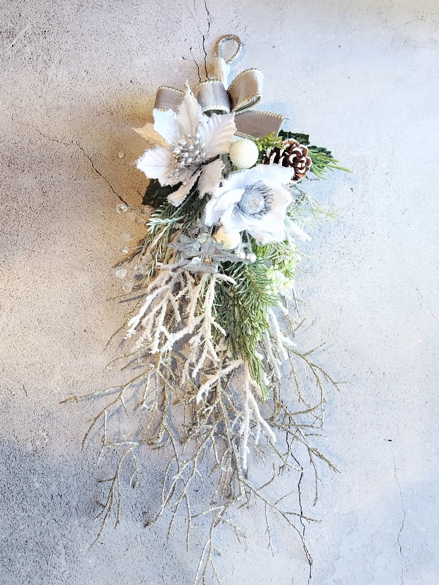 煌めくツイッグにWhite&Silverの花やグリーンを