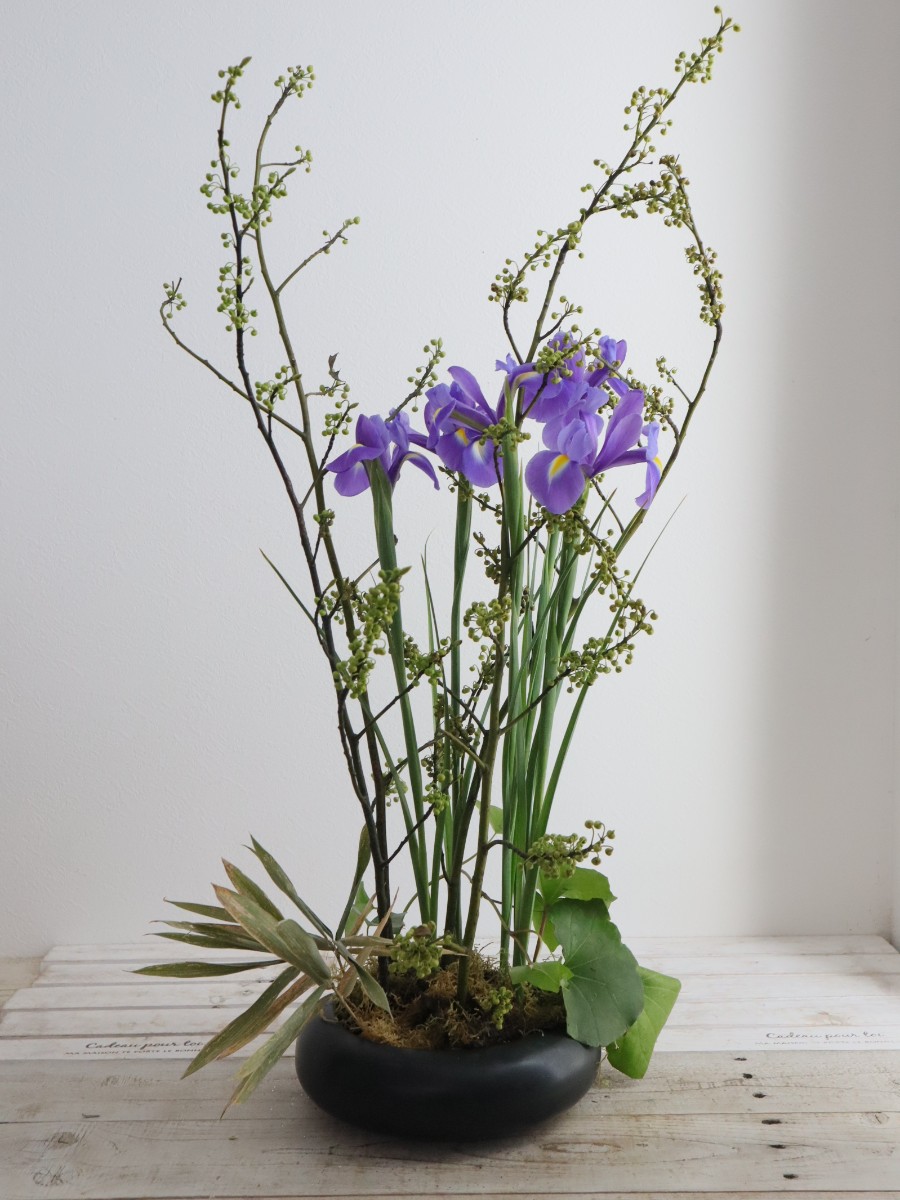 青文字とアイリスの和風アレンジ