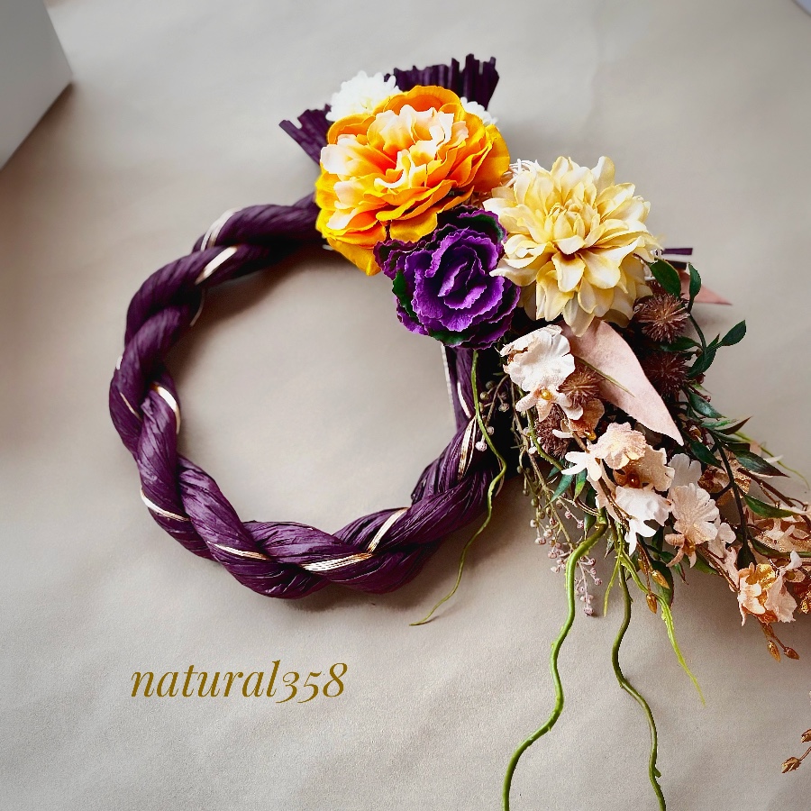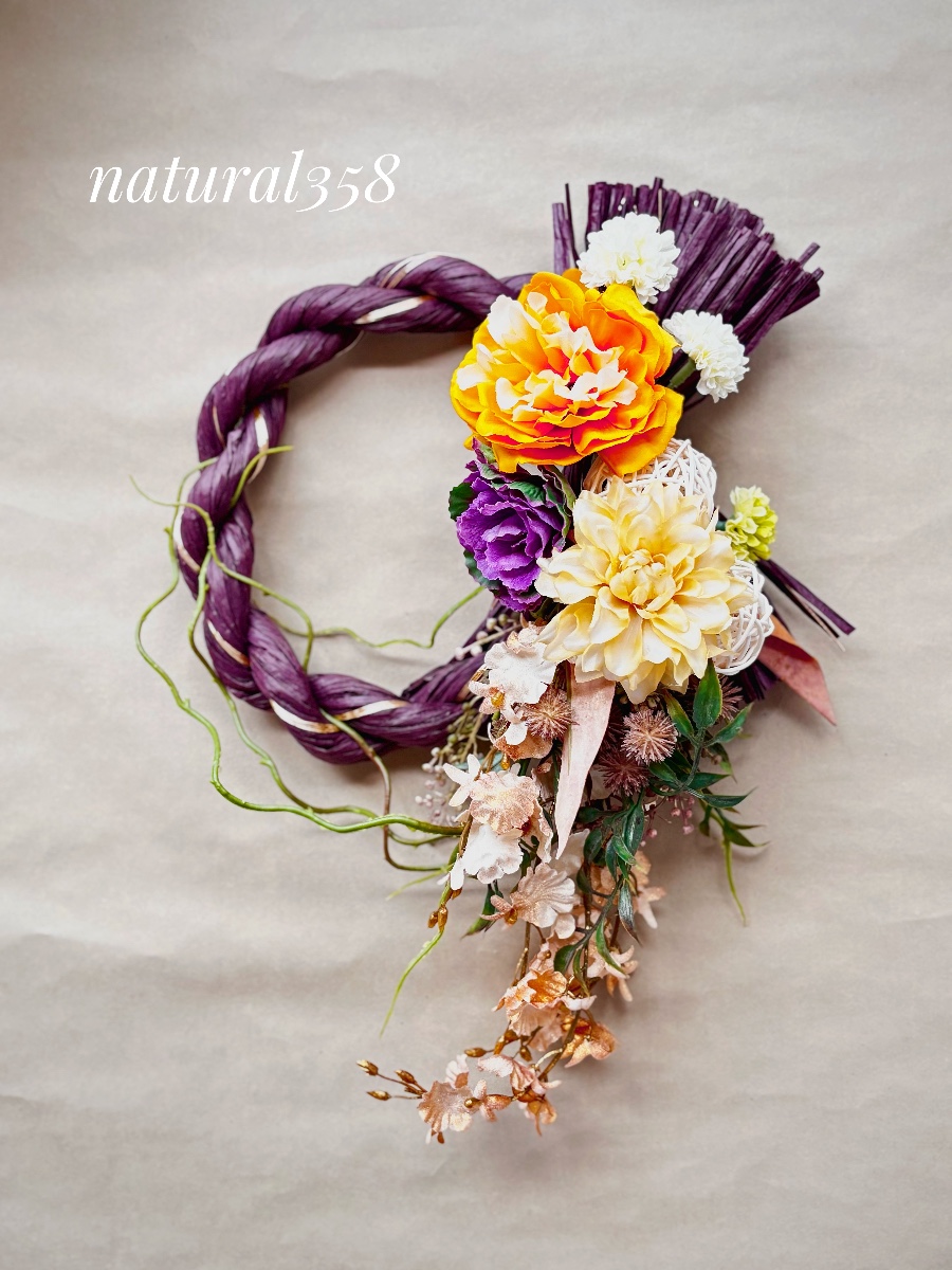 モダンで華やかな色合いに仕上げたしめ飾りです。