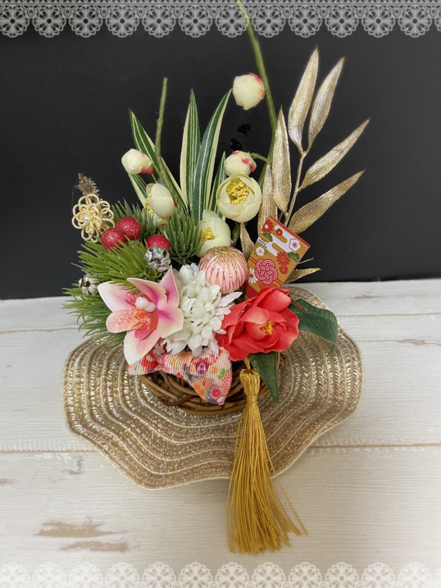華やかな花材や和リボンで飾れば、簡単にお正月のお飾りの出来上がり♪