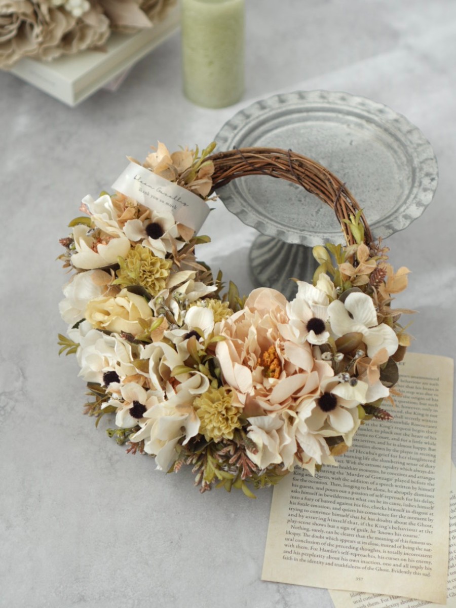 “置くだけ・掛けるだけで簡単に垢抜ける”ホワイト×ニュアンスカラーのリースが完成しました