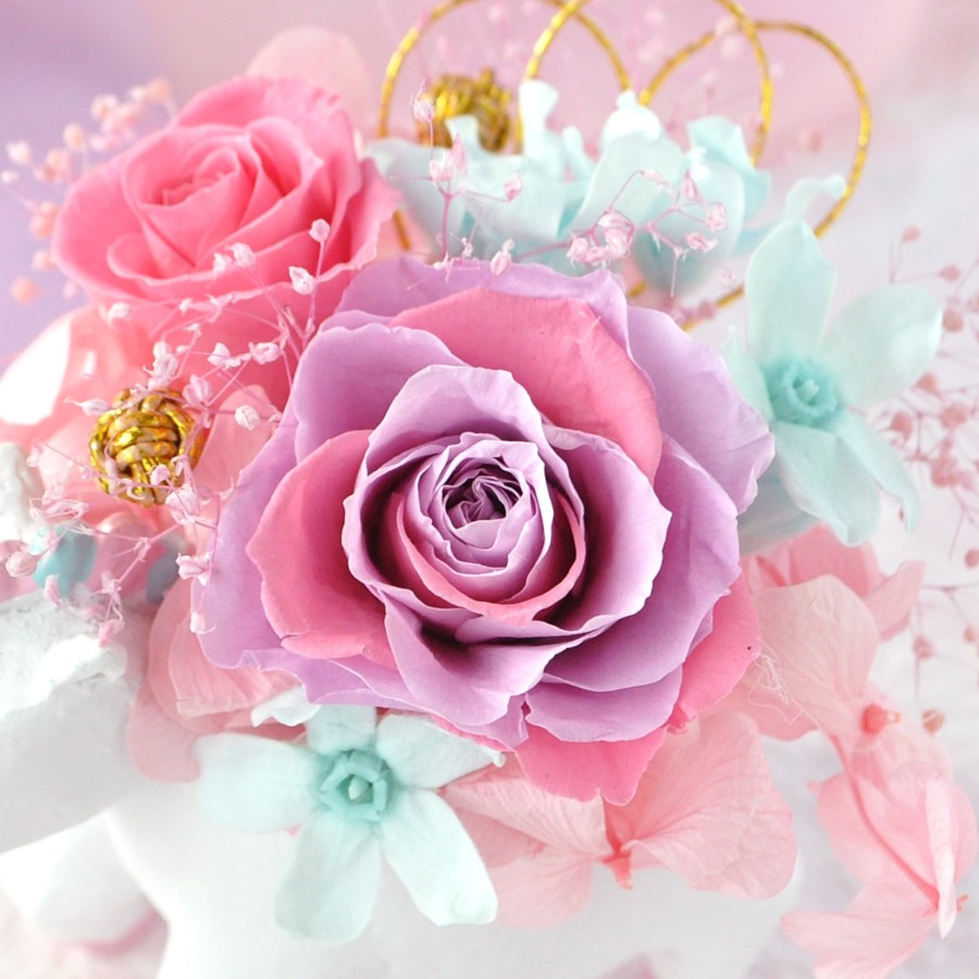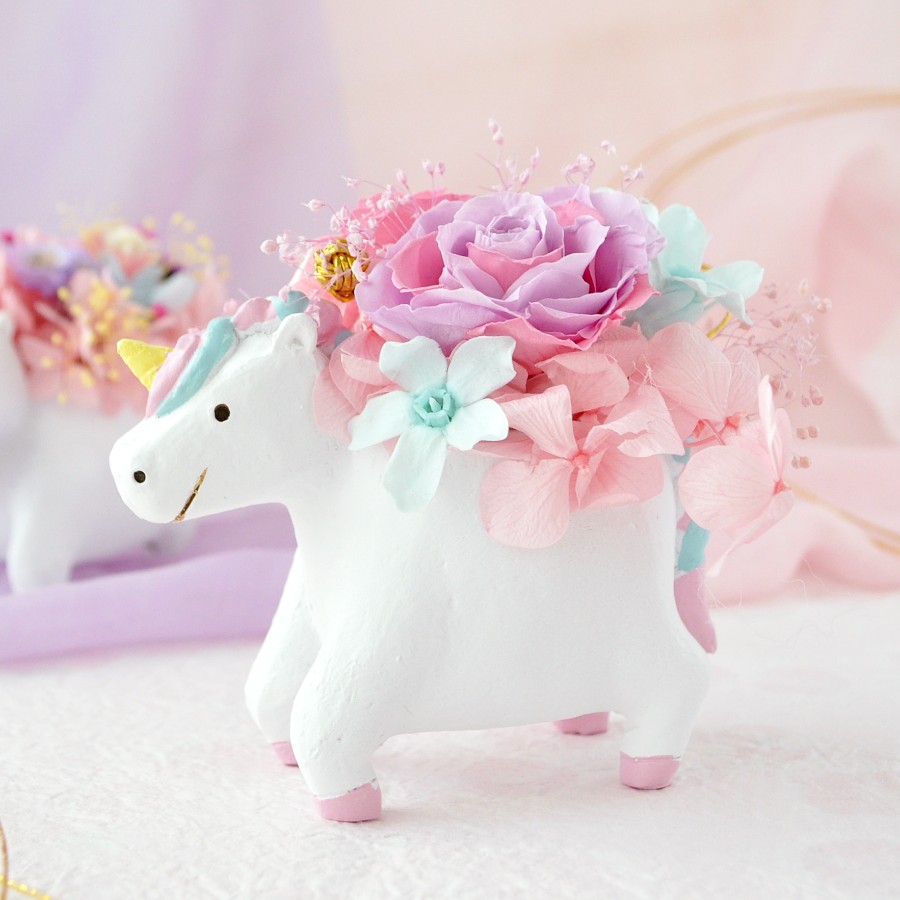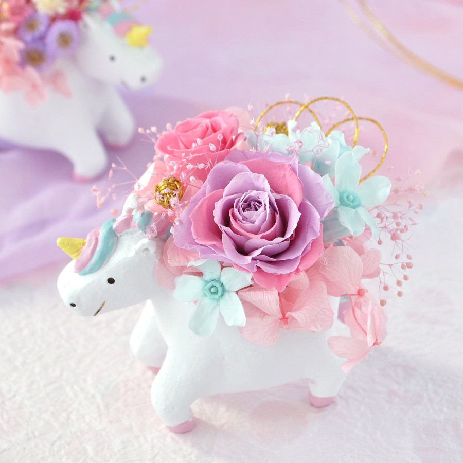 ユニコーンの小さな器に、ゆめかわユニコーンカラーで、ちょっとだけ和風なアレンジを作りました。