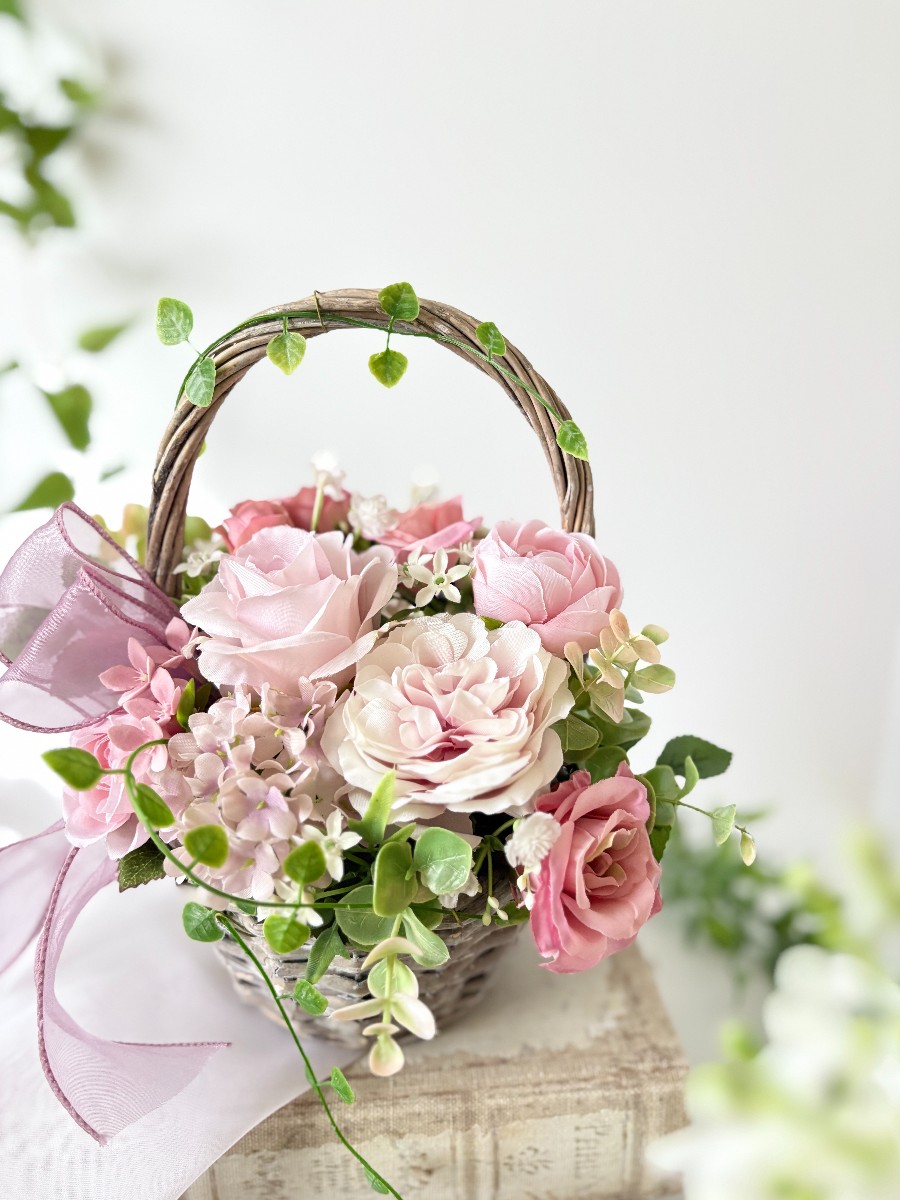 ナチュラルでスイートなバスケットアレンジを作られました。