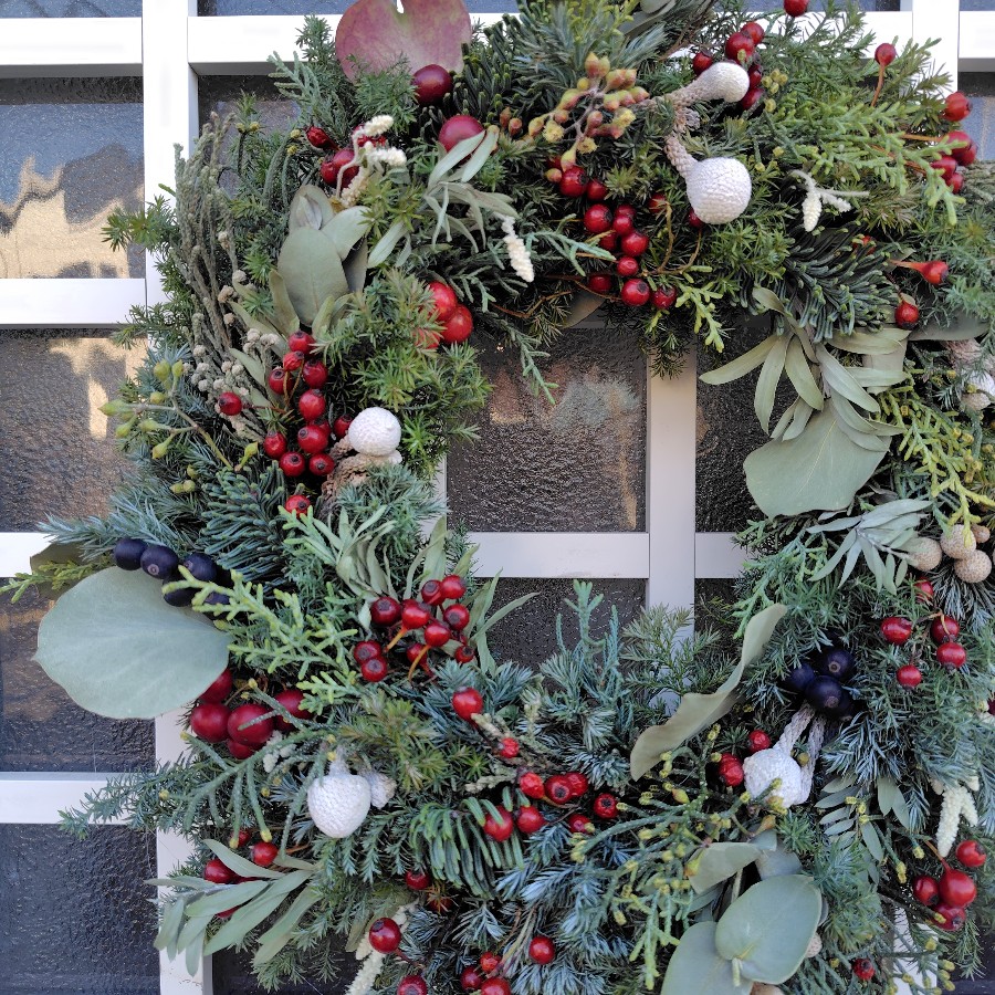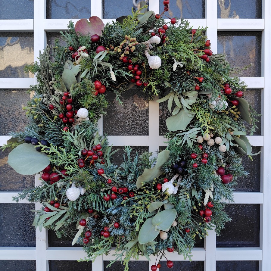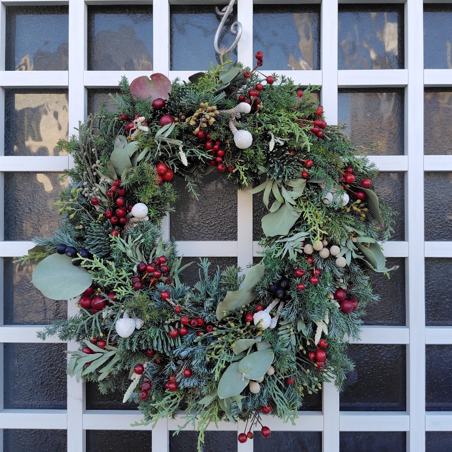 自然の中にある、クリスマスカラーの素材をたくさん集めて作りました。