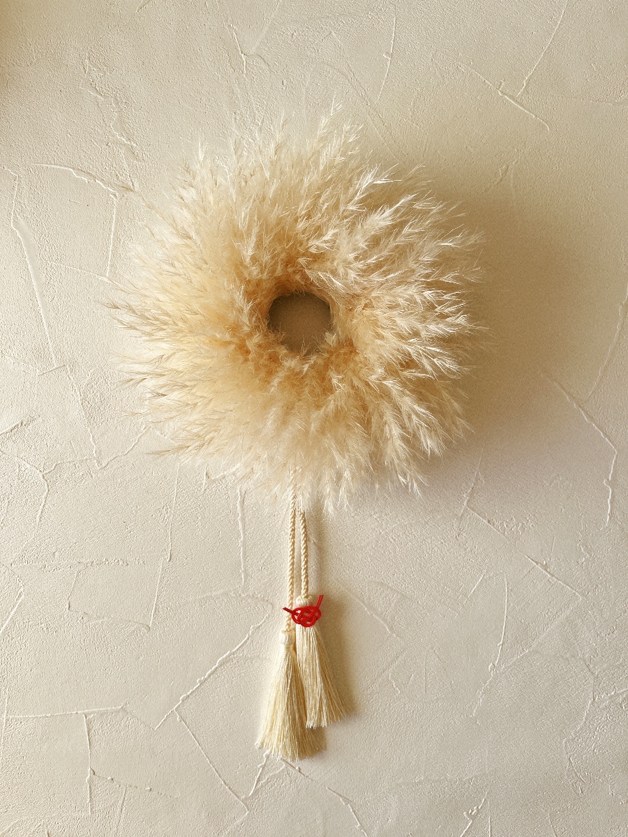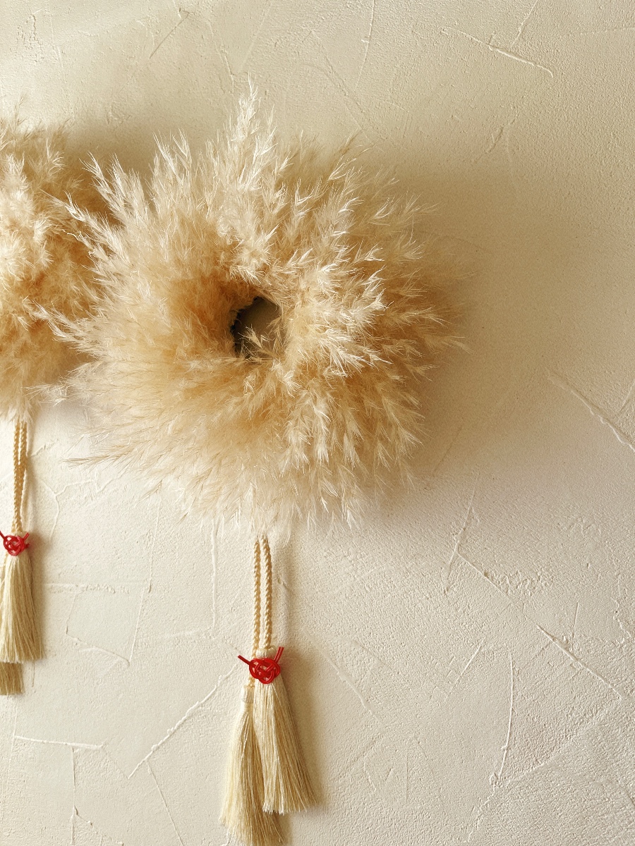 しめ縄を使っていないのでお正月後はタッセルを取り外してインテリアリースとしてお楽しみいただける仕様です。