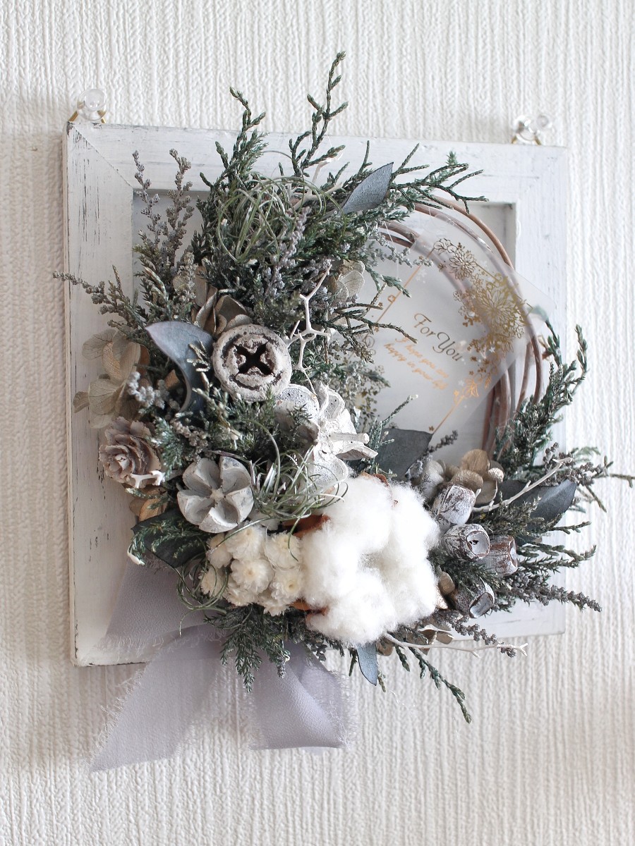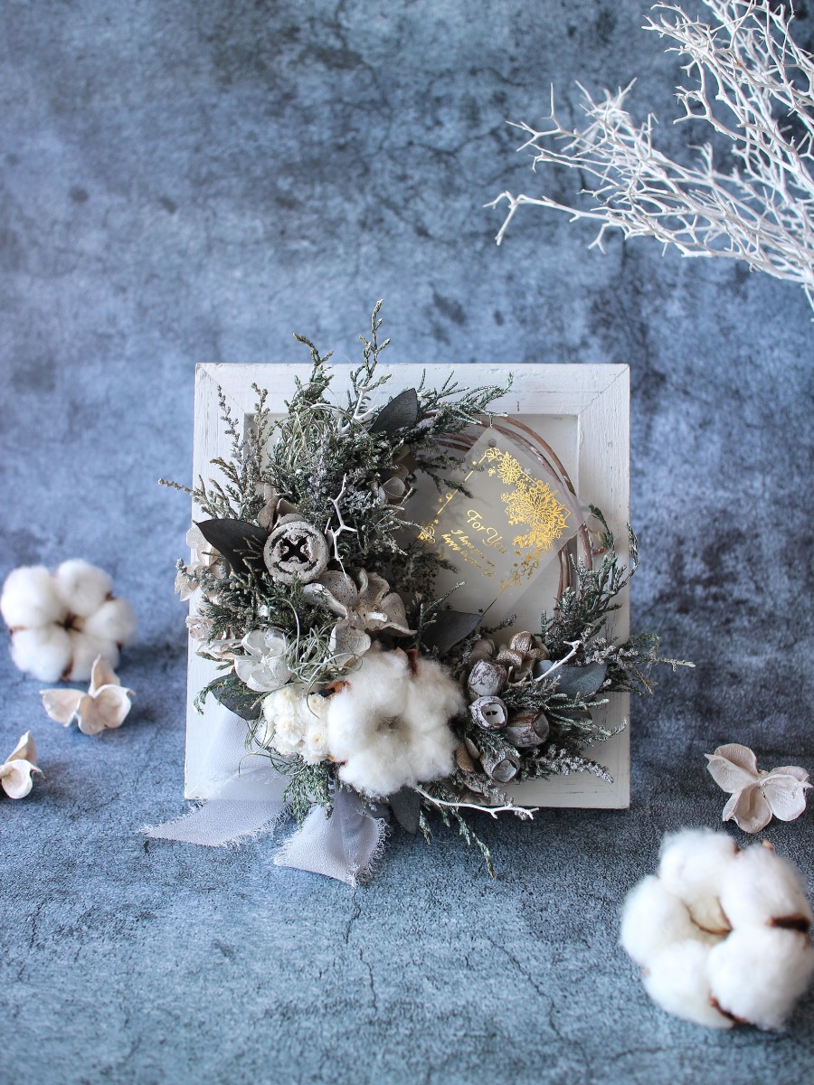 シャビーな雰囲気で、クリスマスがすぎても飾っていただけるデザインに仕立てています。