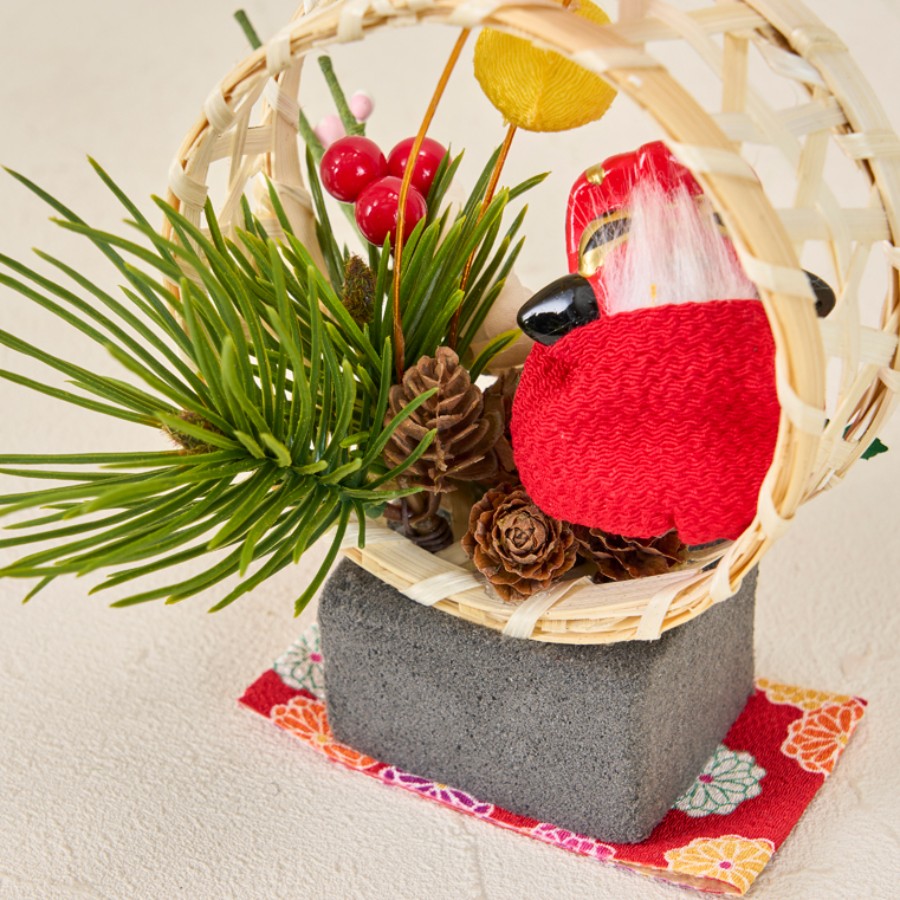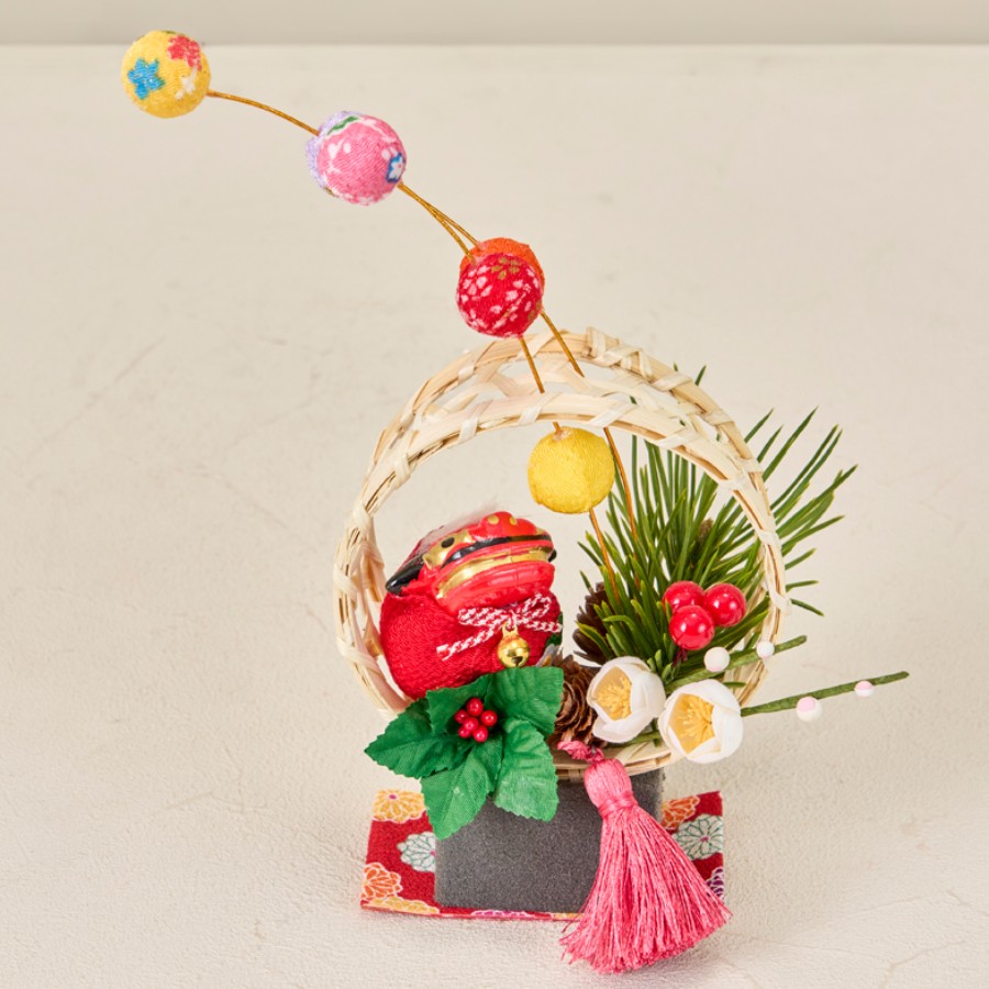 花材とオーナメントはフォームにボンドを付けて挿しています。