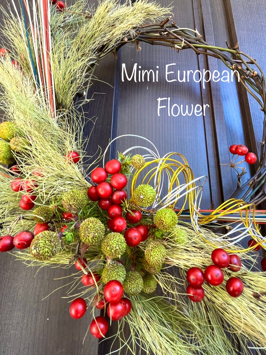 クリスマスリースを水引きや井草を使って少しだけ和風に。年を明けても楽しめます!