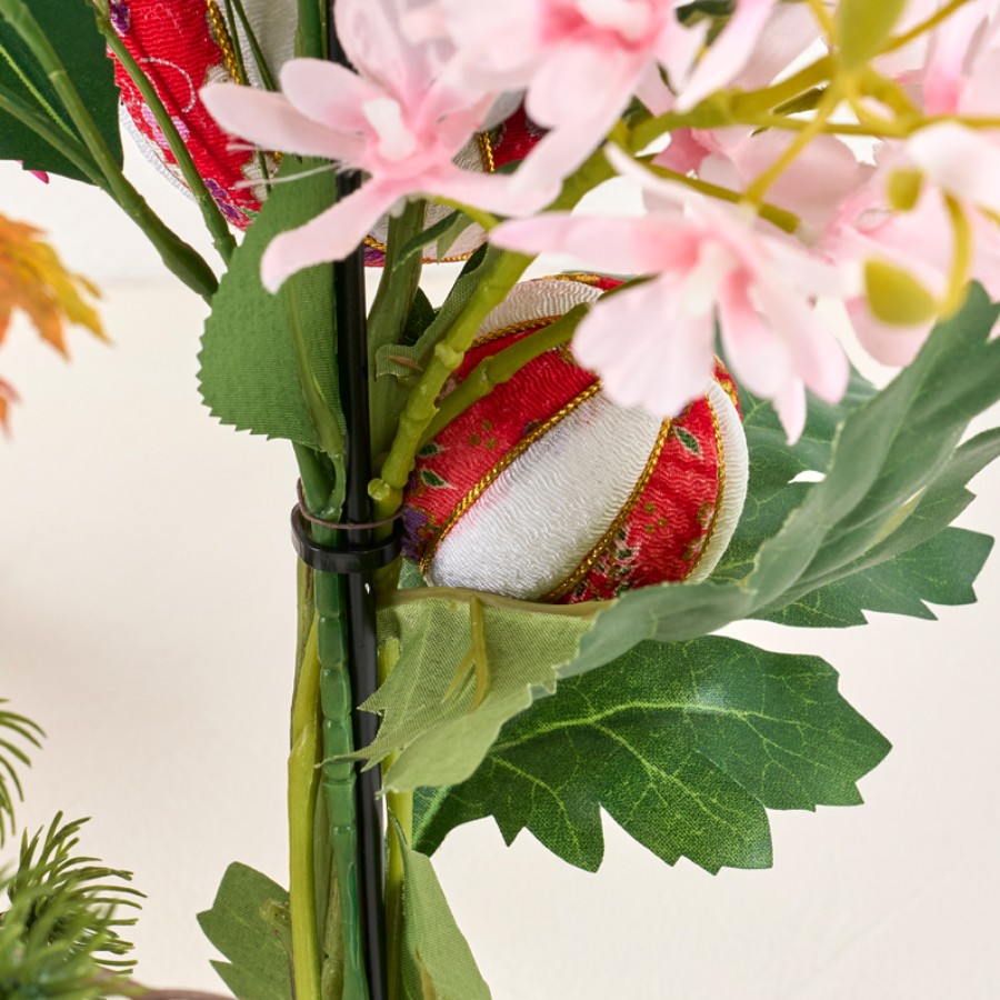 手毬はワイヤーが通るように目打ちで穴を開けベースに固定しています。
