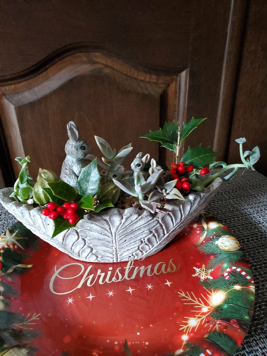 多肉植物の植え込みにウサギ親子がぴったり!