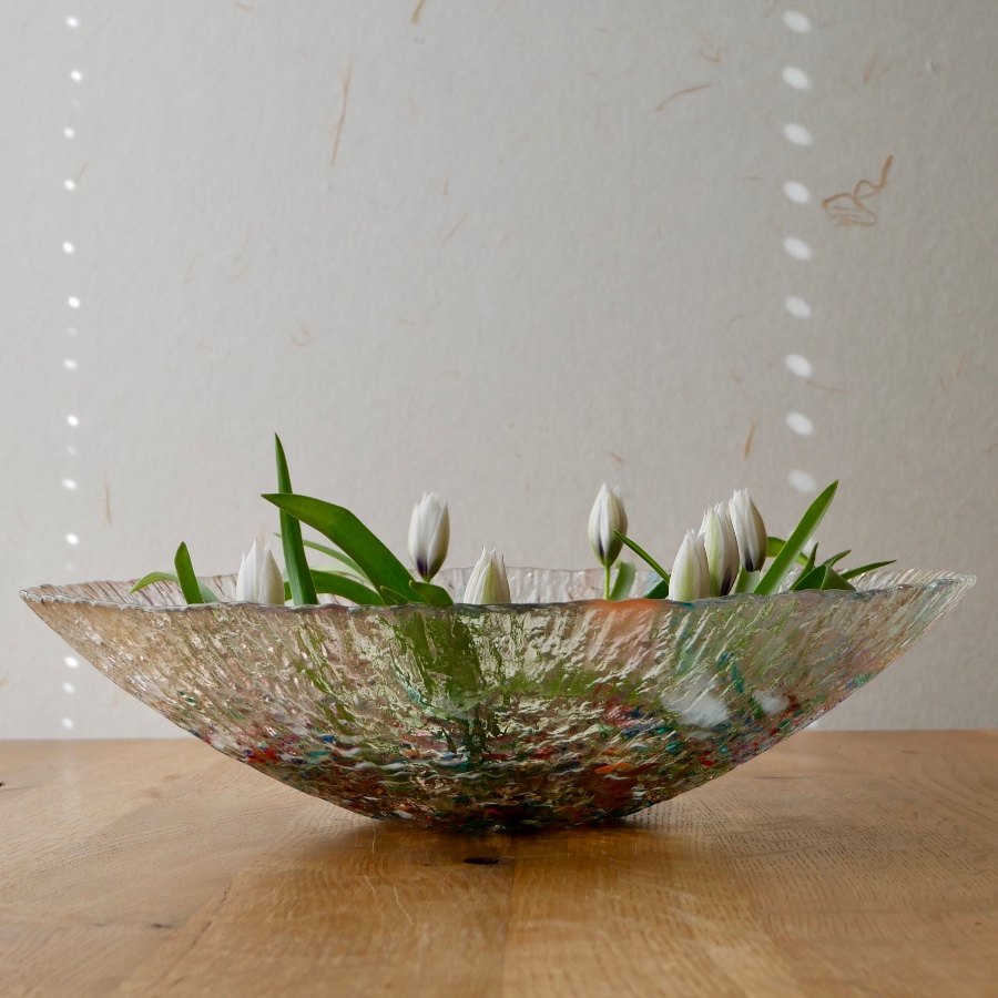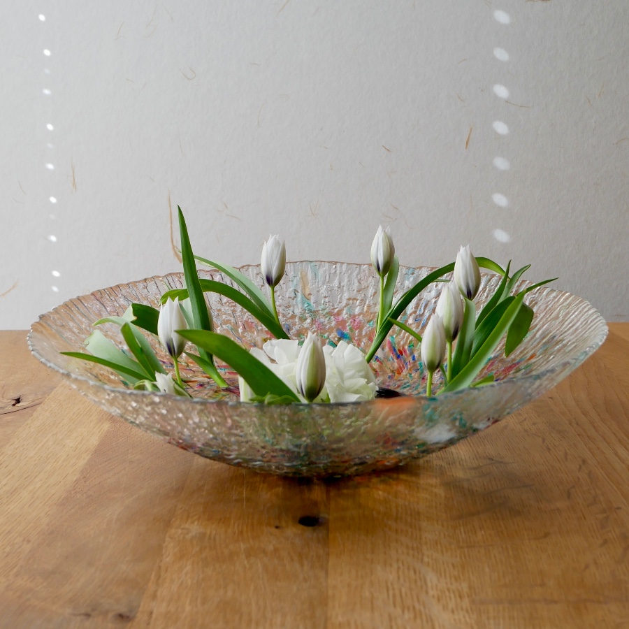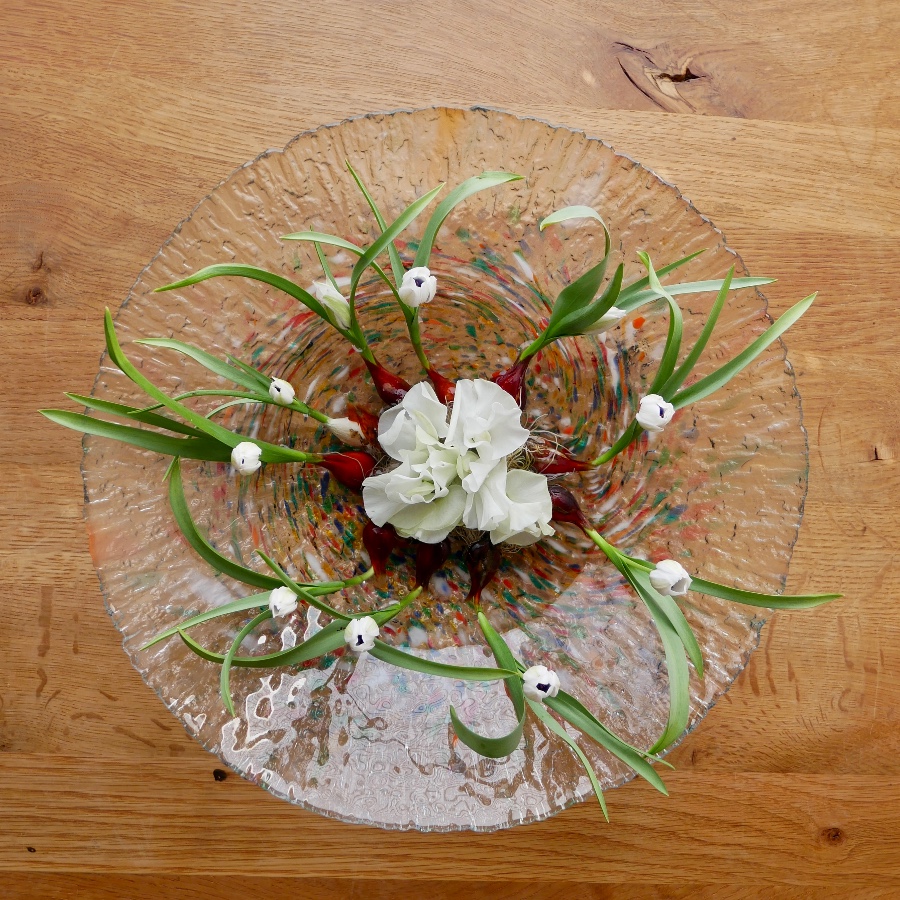 球根つきのミニチューリップをいけて、春を楽しみます。