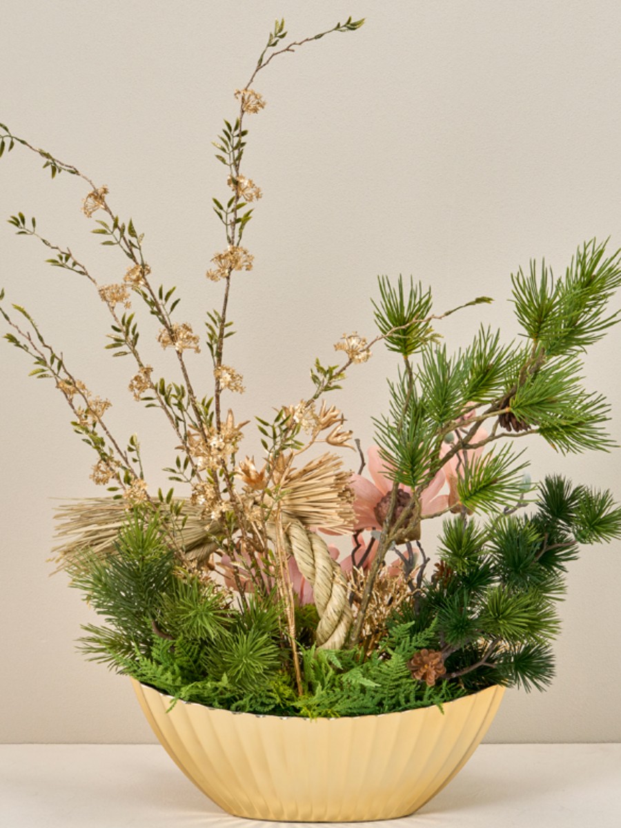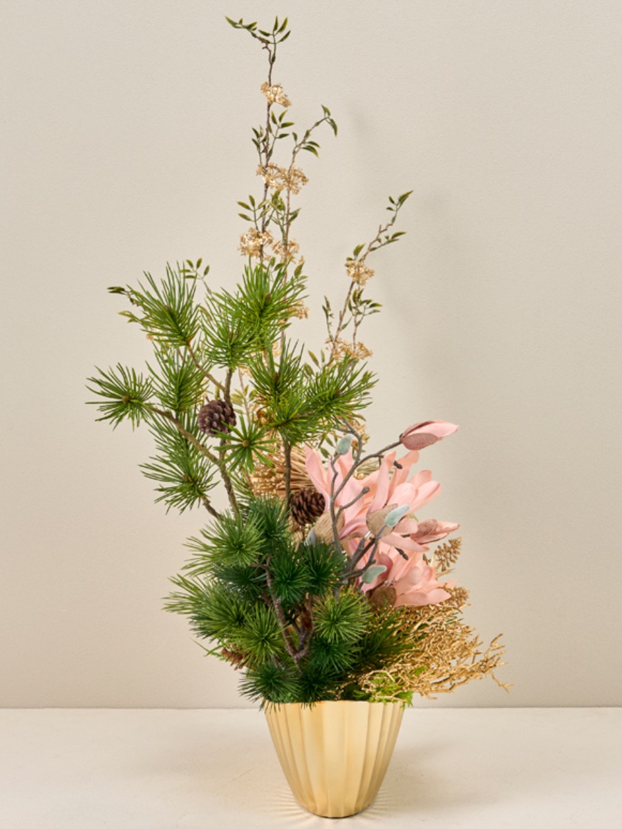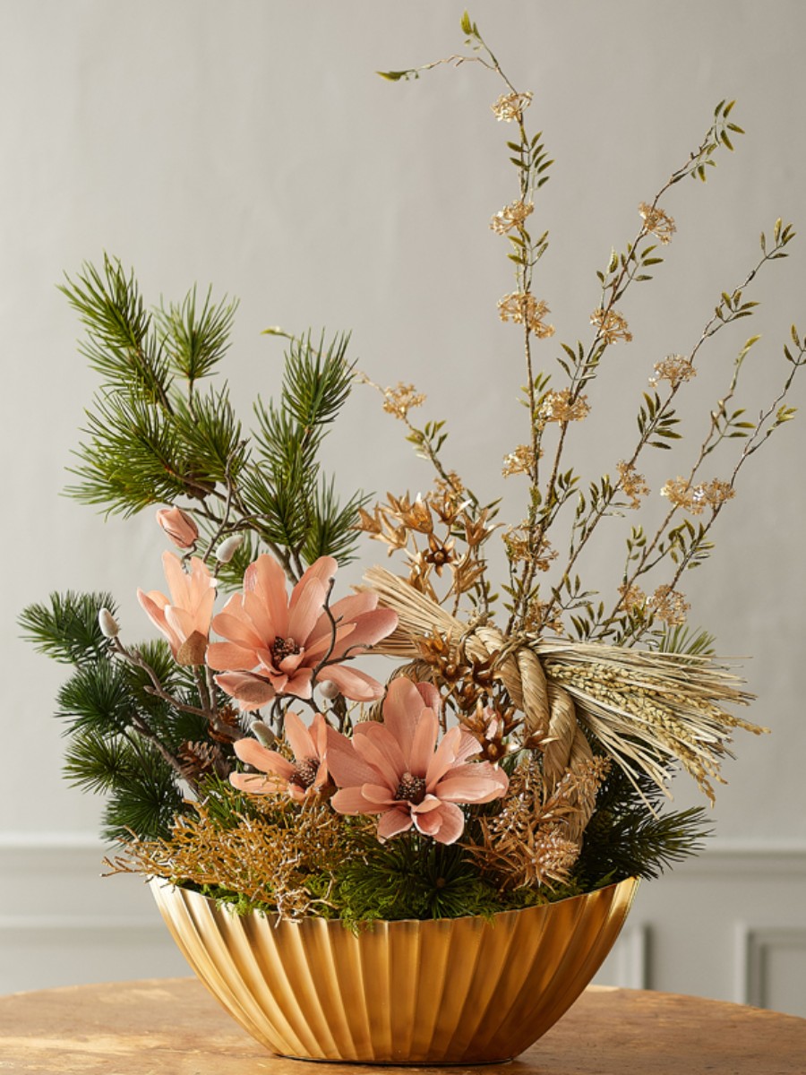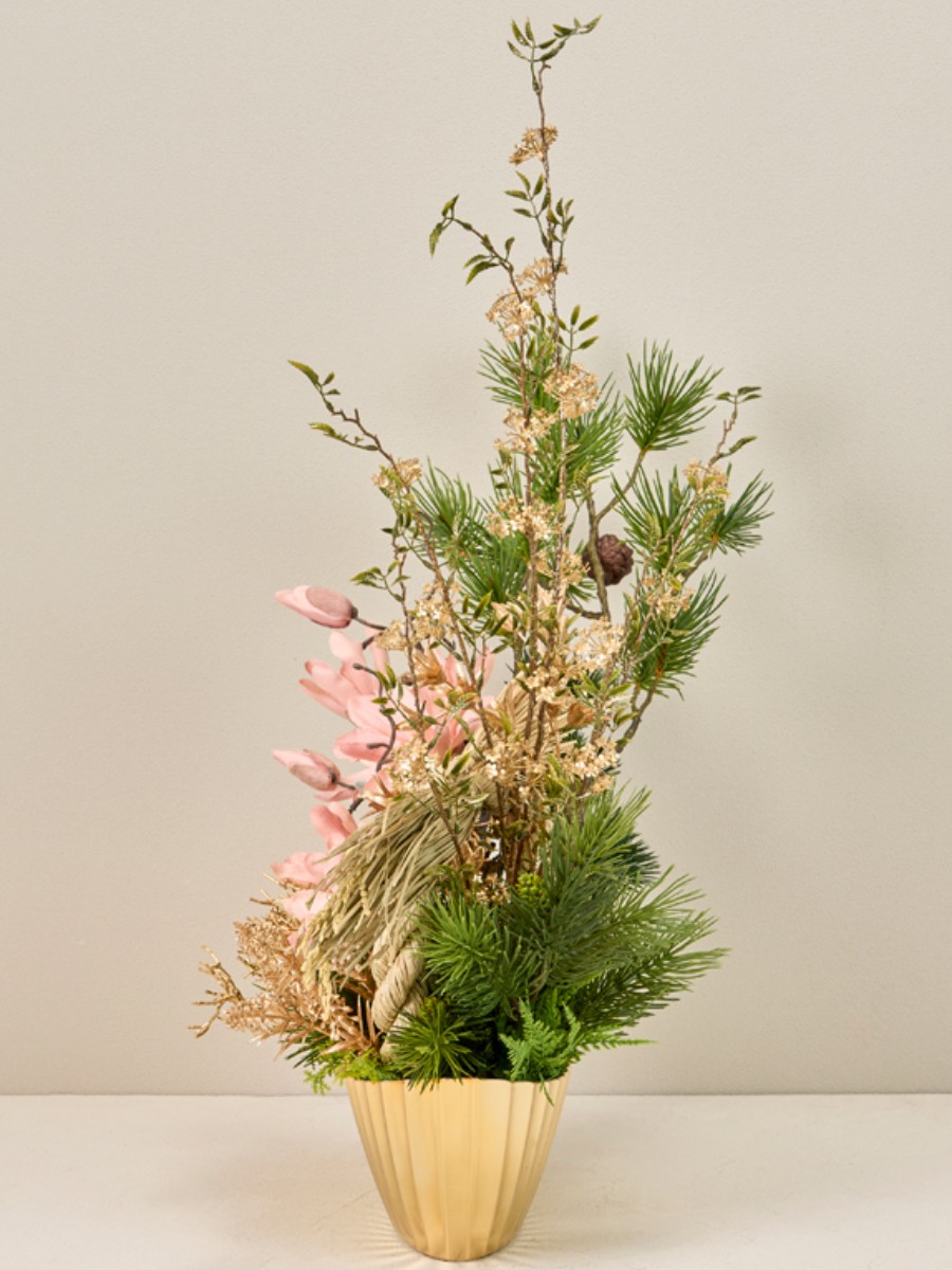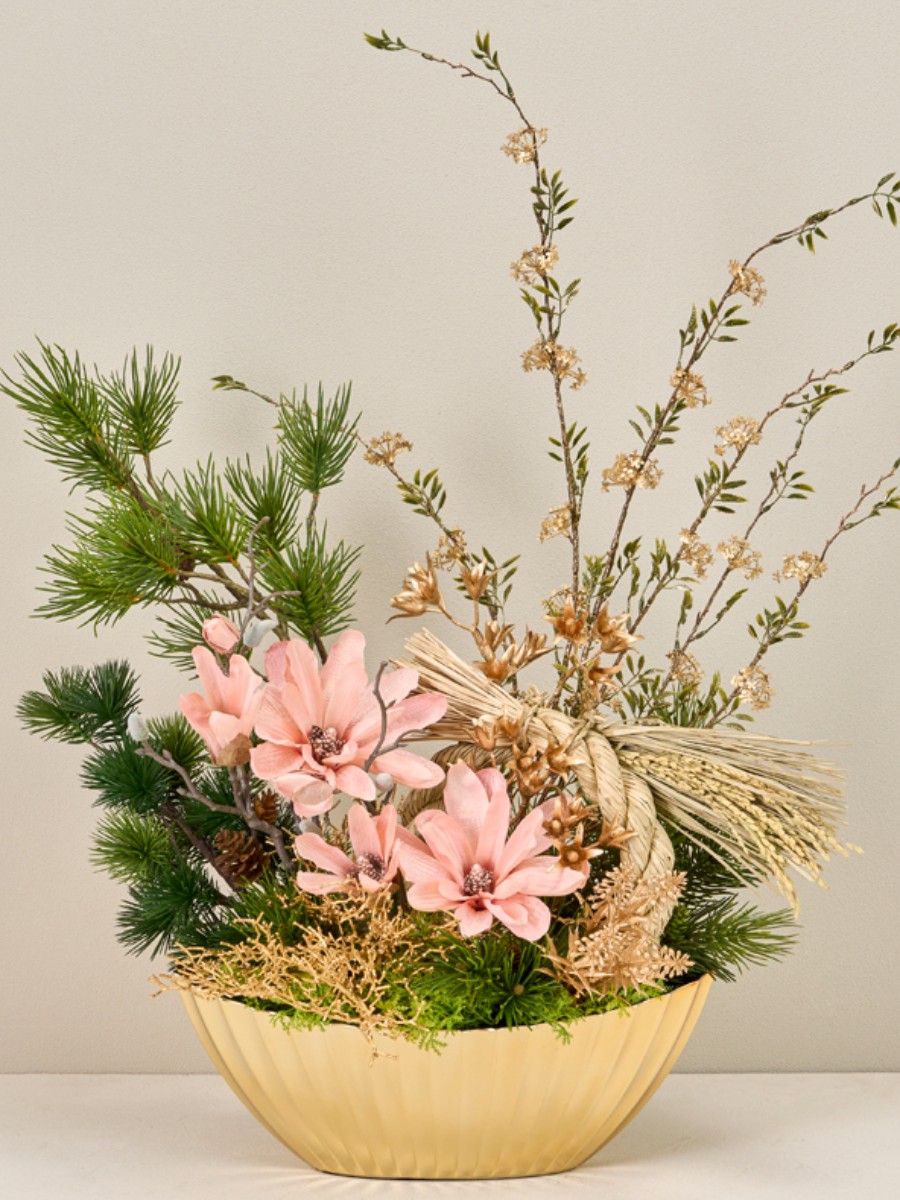 お正月飾りですが、ピンクのマグノリアが春の訪れを感じさせる柔らかなイメージのアレンジです。
