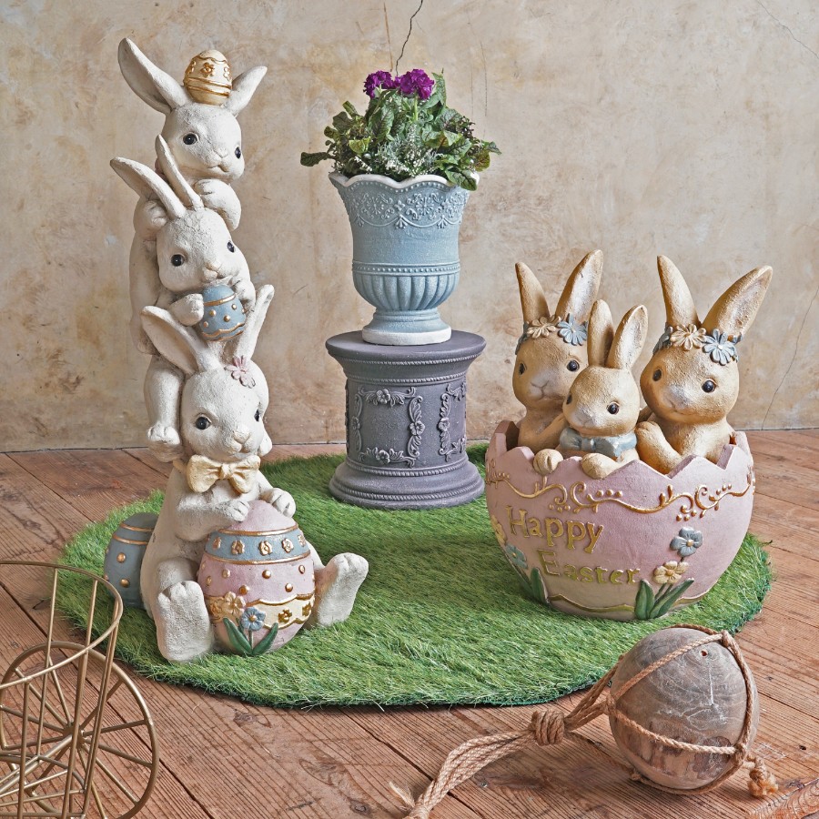 にぎやかなデザインが魅力の、グラスファイバー製イースターオブジェ。
