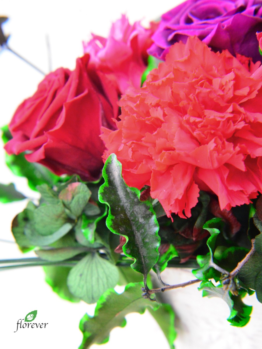 新鮮な生花の中から加工に適する花を厳選し、独自の技術で加工を施すことにより、生花により近い感触と透明感を実現し、花弁が肉厚でしなやかなのが特徴です。