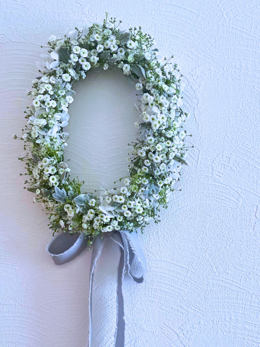 凛とした中にも、ふわっと心がほどけるようなリースです。