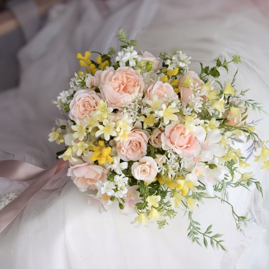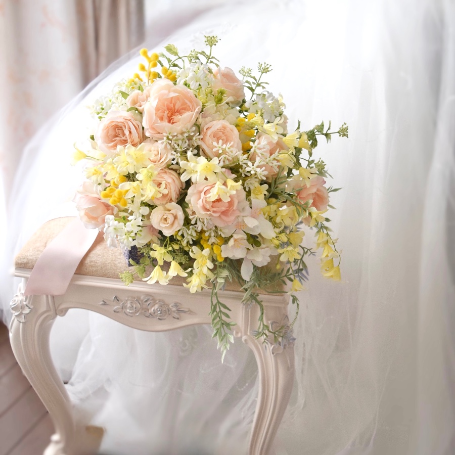 現在は、主にブライダルブーケ・リース・アレンジメントなどを制作・販売させていただいております。