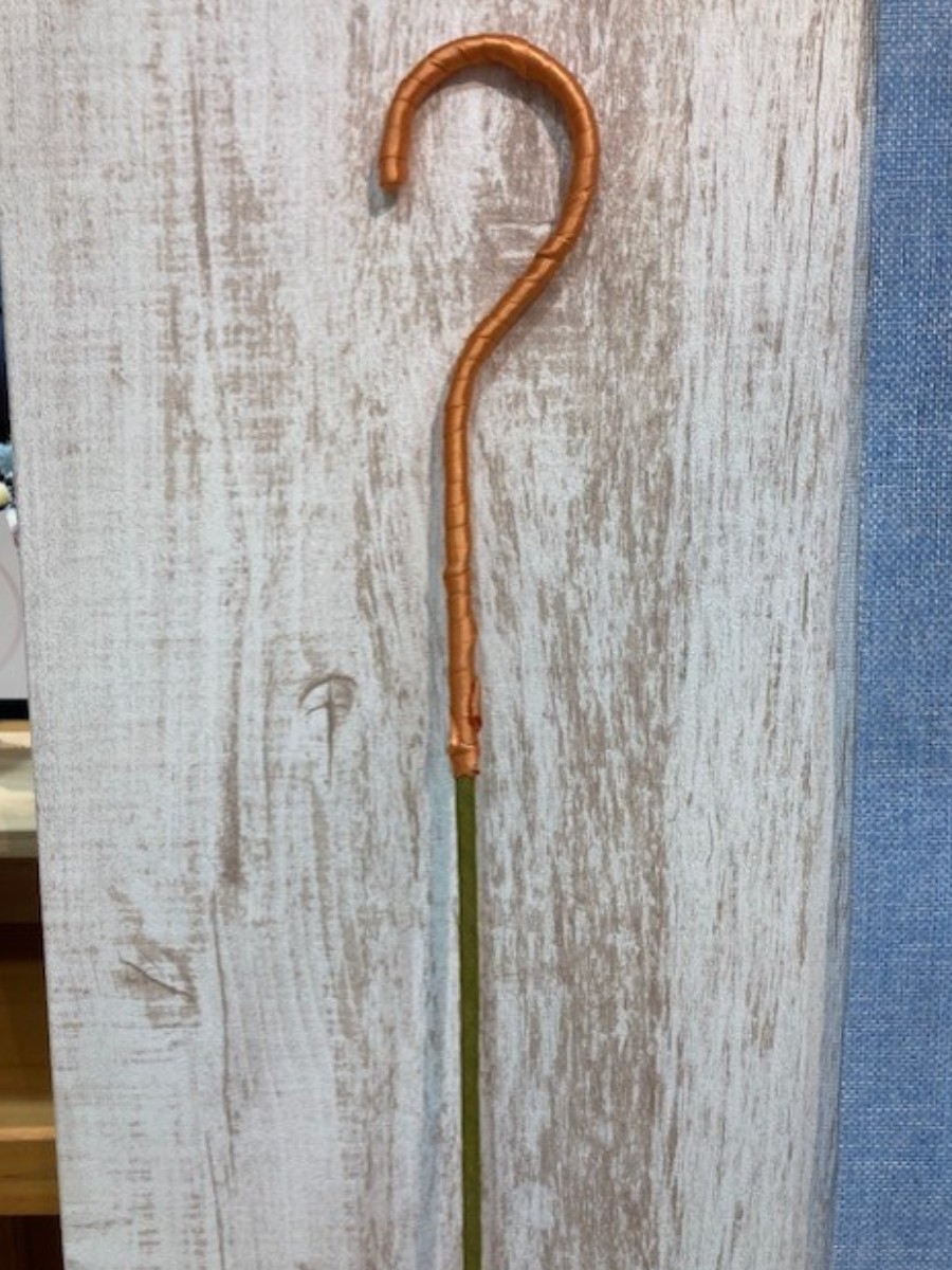 太巻きワイヤーを曲げて作った傘の軸を中心に花材を束ねます。